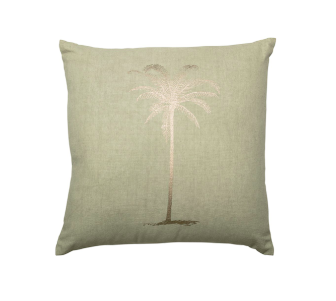 Dekorativt putetrekk i bomull med palmetrykk i gull