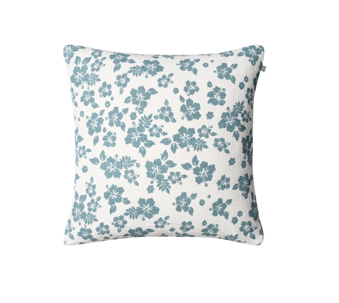 Putetrekk i lin – Indu, Offwhite & Heaven blue. Bring varme vibber til ethvert rom i hjemmet ditt med denne lekne florale bestemor-chic puten.