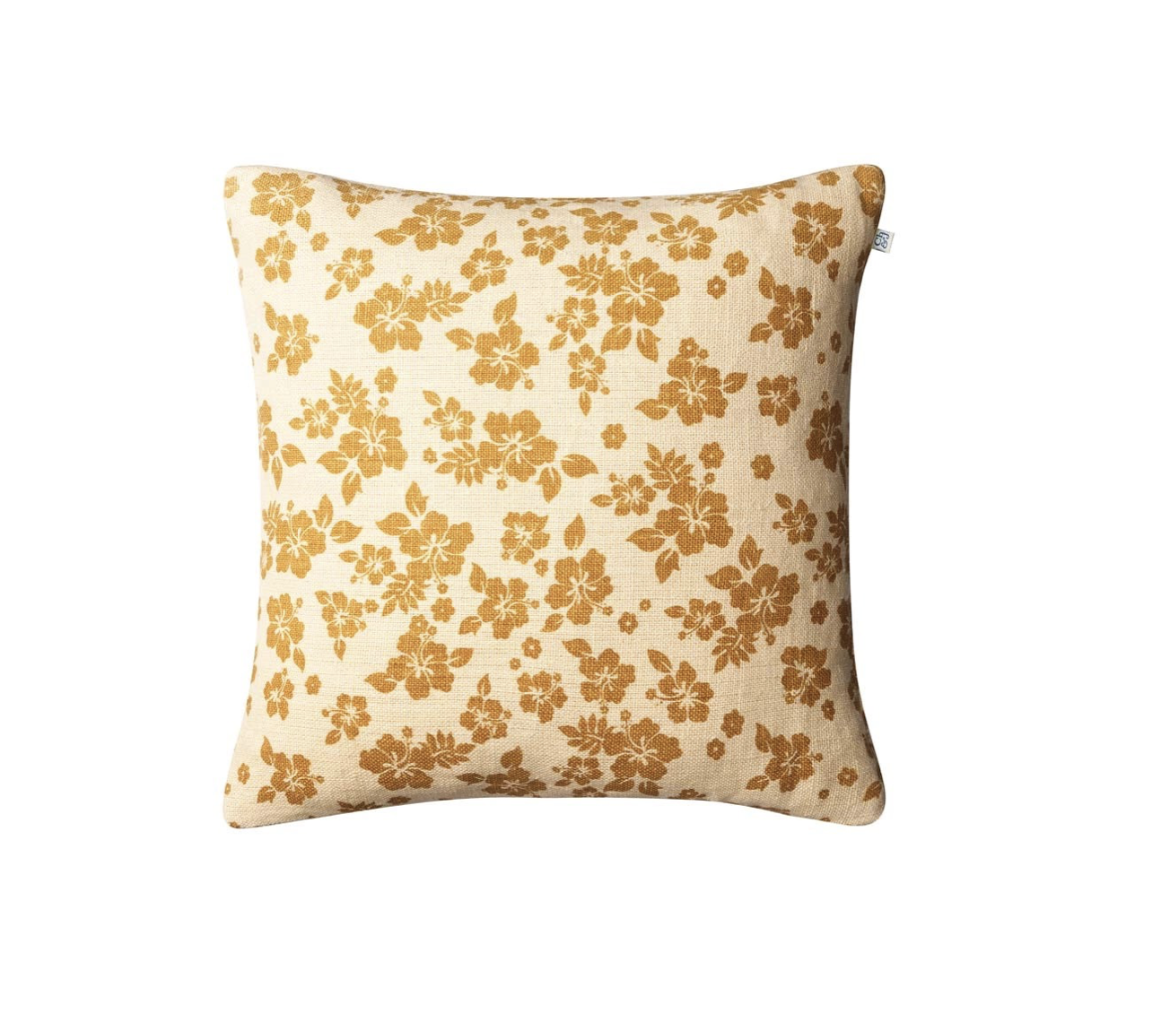 Putetrekk i lin – Indu, spicy yellow. Bring varme vibber til ethvert rom i hjemmet ditt med denne lekne florale bestemor-chic puten.
