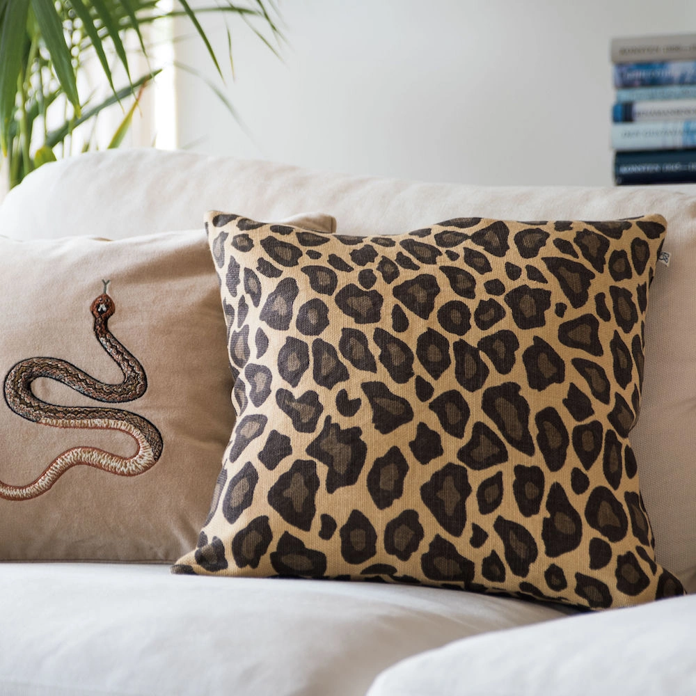 Putetrekk Linen Leopard – Brun 50 x 50 cm. Laget av 100% lin og håndtrykt. Dette putetrekk i lin er laget av et spesielt 2 -lags lin vevd i en liten hytteindustri. Sengetøyet blir deretter trykt for hånd med silkeskjermer og tradisjonelle metoder som gjør hvert putetrekk unikt. Ingen indre puter er inkludert.