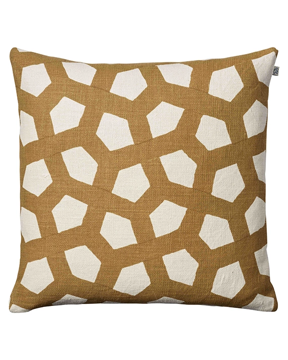 Putetrekk Linen Meera – Masala Gul 50 x 50 cm. Laget av 100% lin og håndtrykt. Dette putetrekk i lin er laget av et spesielt 2 -lags lin vevd i en liten hytteindustri. Sengetøyet blir deretter trykt for hånd med silkeskjermer og tradisjonelle metoder som gjør hvert putetrekk unikt.
