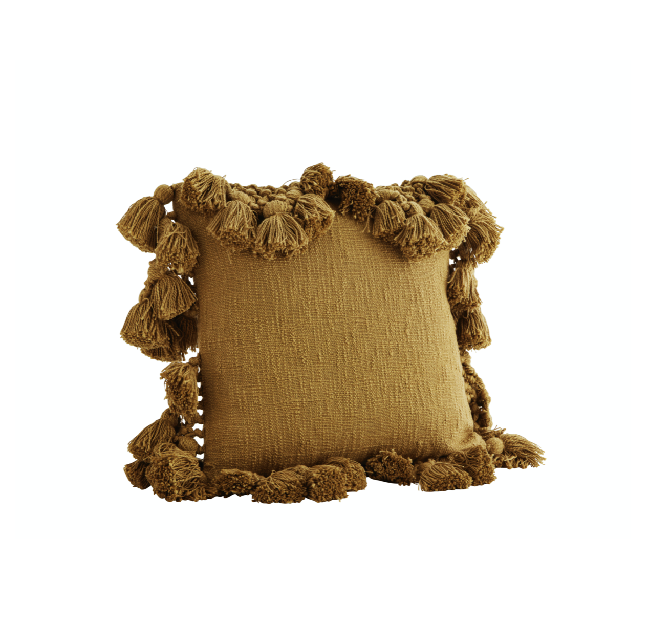 Putetrekk «Tassel» i sennep farget grov bomull.