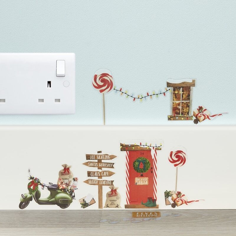 Etter en lang arbeidsdag kan alven din komme tilbake til sitt koselige hjem i veggen! Det 14 gjenbrukbare klistremerket for alvestørrelse kan feste seg på vegger eller gulvbrett og legge til litt festlig stemning i hjemmet ditt.
