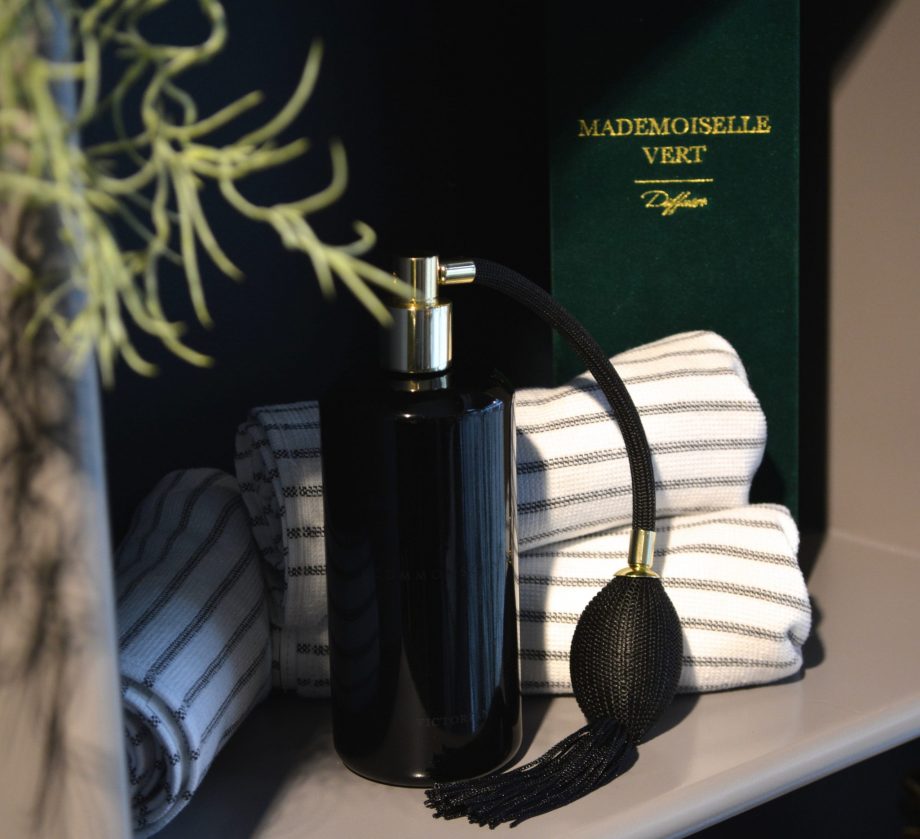 Romspray med en deilig duft som passer de fleste hjem. Dekorativ flaske, som gir oss assosiasjoner av gamle vintage parfymeflaske.