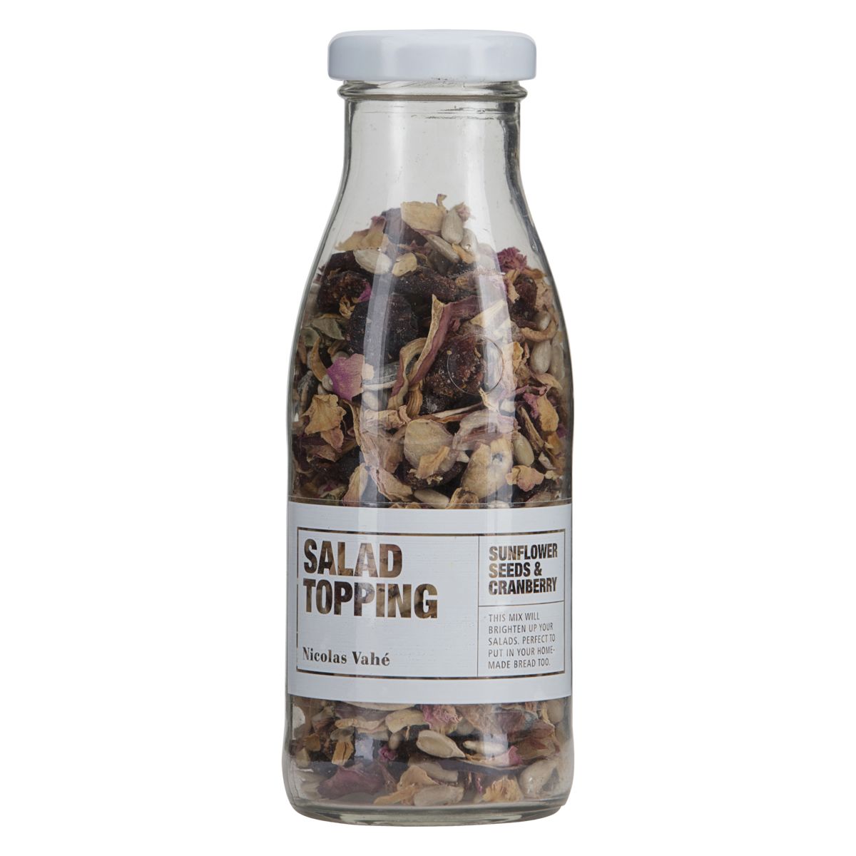 Innholder: Solsikkefrø, tranebær, rørsukker, solsikkeolje, sjalottløk og roseblader