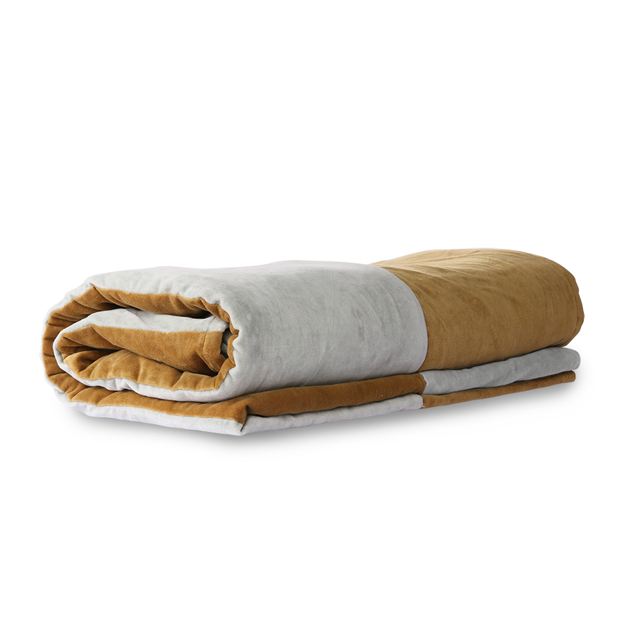 Sengeteppe i velvet. Sengeteppet passer perfekt til en dobbelseng, 100 % bomull, kan vaskes på 30 grader