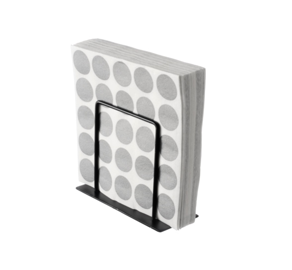 Dekorativ og praktisk serviettholder i sort metall. Passer til både innendørs og utendørs bruk.