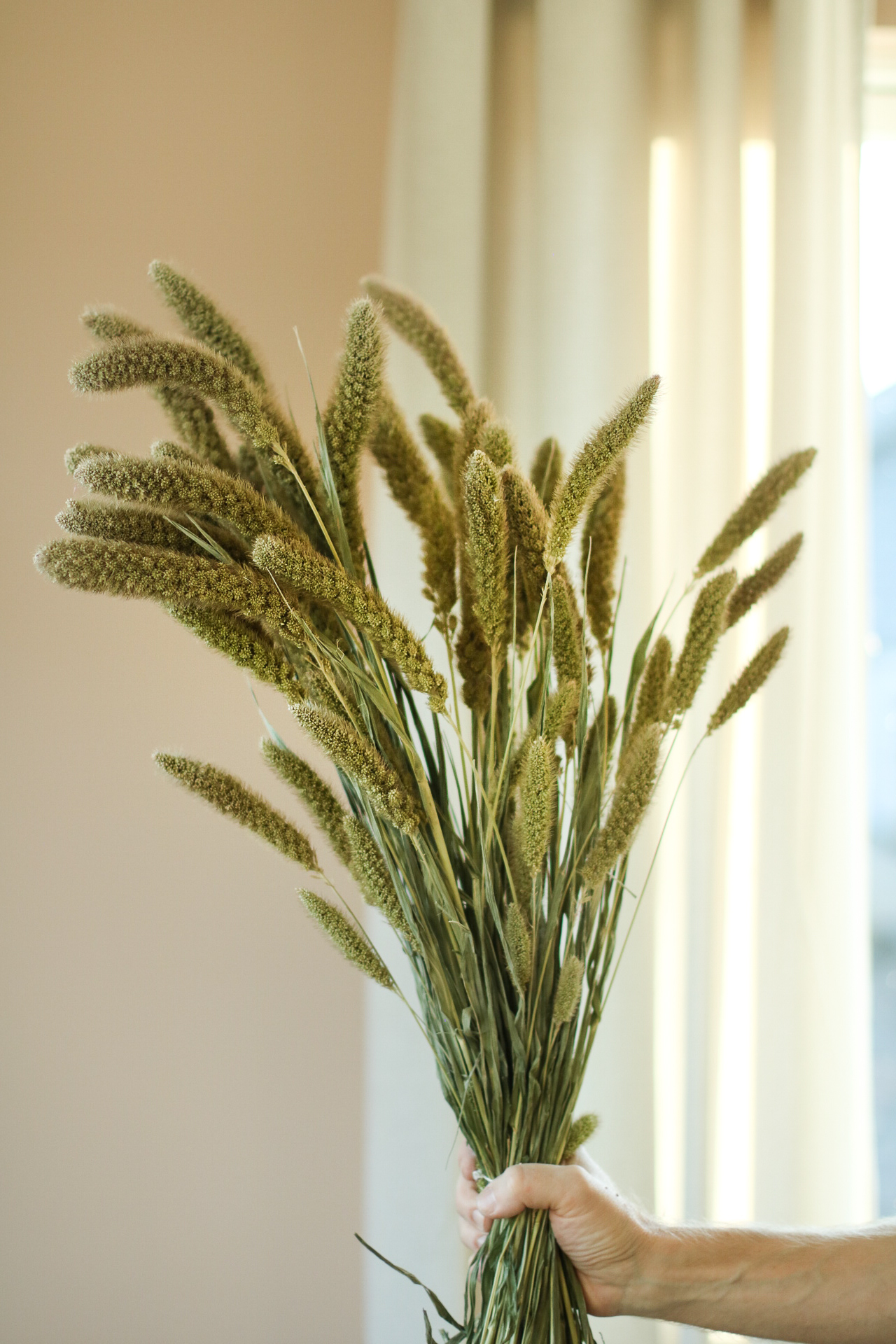 En stor og fin bunt med Setaria i en frostet og dempet lys grå-farge.