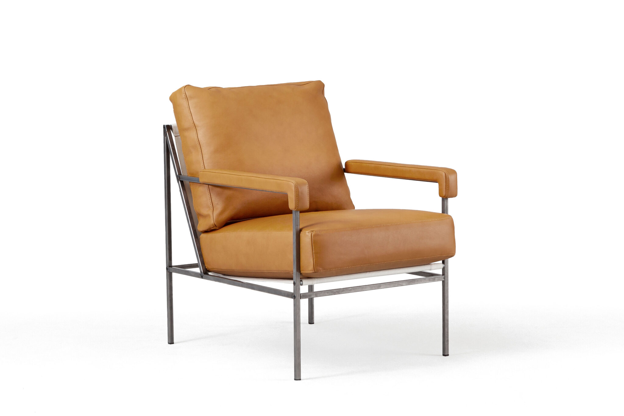 Seventy five hvilestol fra det svenske designmerket Jonas Ihreborn. En av våre favoritter med et stramt design, men myk og komfortabel sittekomfort. Velg mellom mange forskjellige stoffer og skinn, samt natur eller sort canvas på baksiden og sete i selve rammen på stolen.