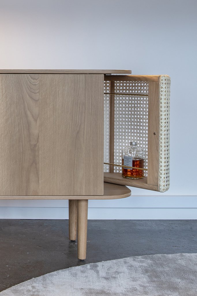 Treasures er en skjenk som passer rett inn i alle hjem, med sitt enkle linjer og fine design. Skapet er laget av finert eik, og de buede sidedørene gir et mykt og spennede uttrykk på skjenken.