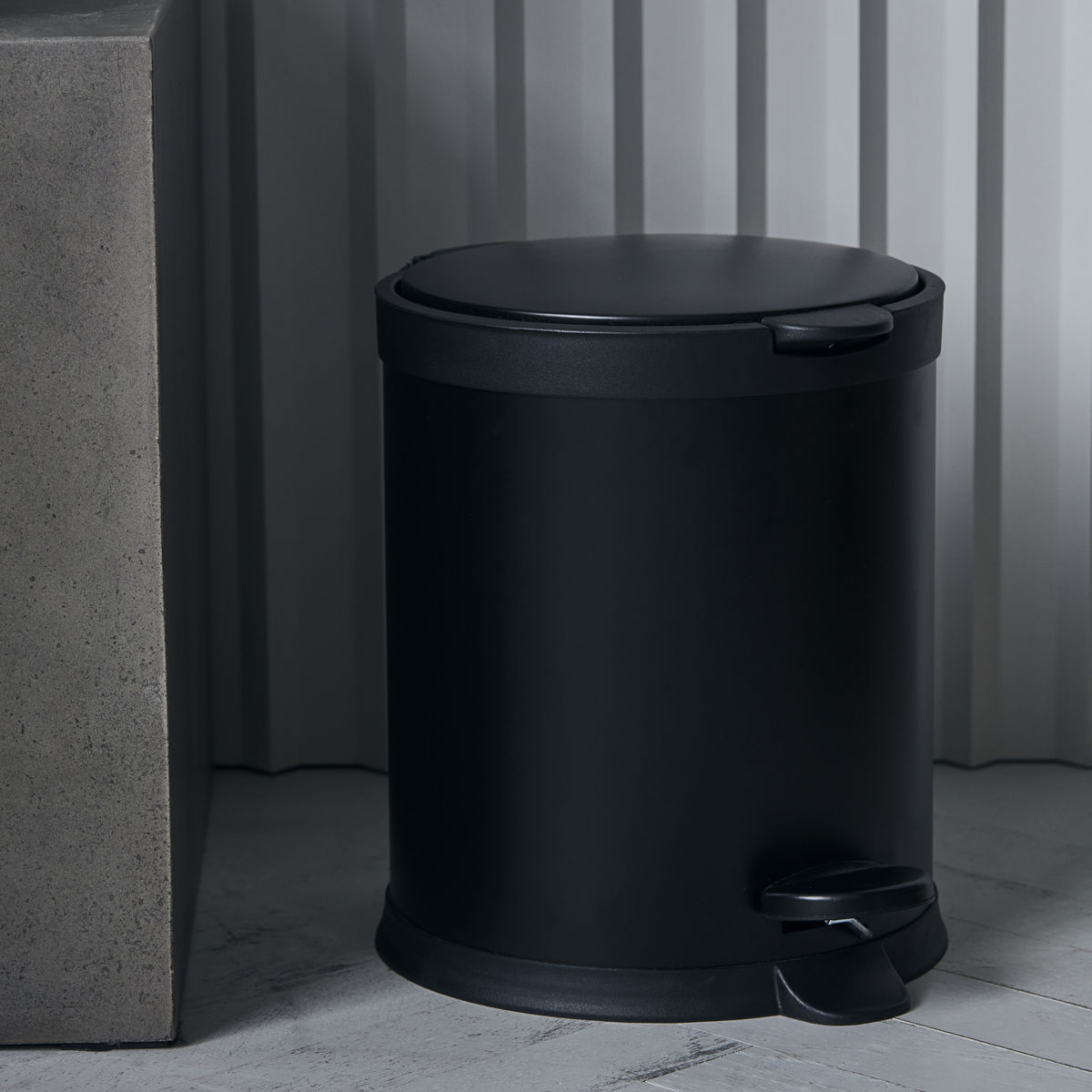 En liten søppelbøtte med pedal er et must på hjemmekontoret eller badet. Eda er en svart søppelbøtte som rommer 5 liter og er laget av jern i et matt utseende. Den indre spannen leveres med et håndtak for å enkelt fjerne og tømme innholdet. Som et preg på den tidløse designet er lokket et mykt lukkende lokk, mens et håndtak gjør det enkelt å plassere spannen hvor du trenger den.