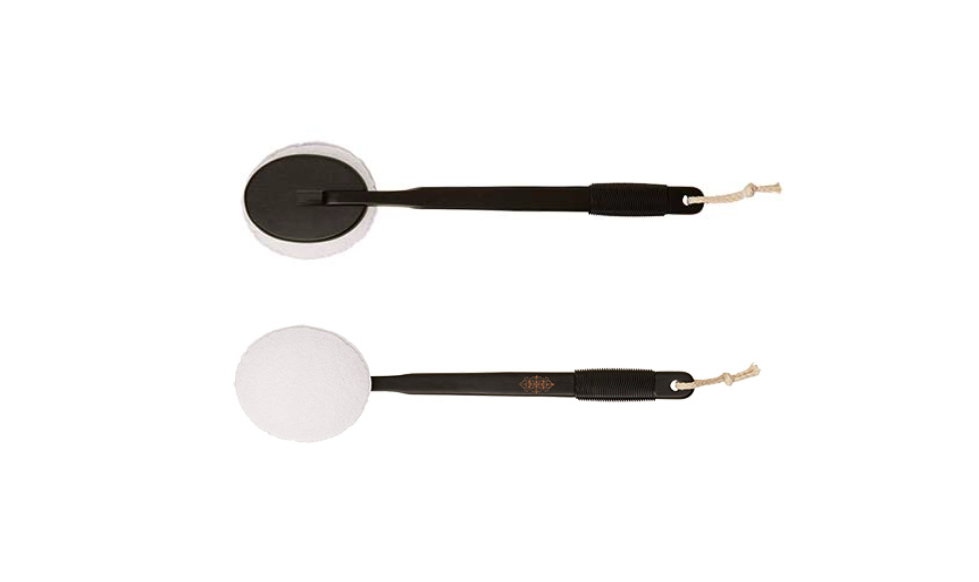 Få spa-følelsen i hjemmet med denne deilige, børsten med skrubb. Laget av treverk i skaftet og en hvit bomullstråd for å henge den opp med.