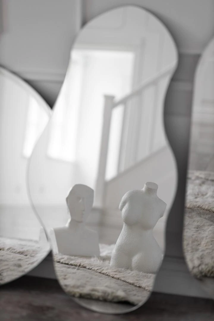 Speilet har et lekent og organisk design. Den uregelmessige formen gjør speilet til et unikt og moderne innslag på veggen hjemme. Med sin moderne tvist vil speilet utvilsomt bli et blikkfang og en favoritt i mange hjem