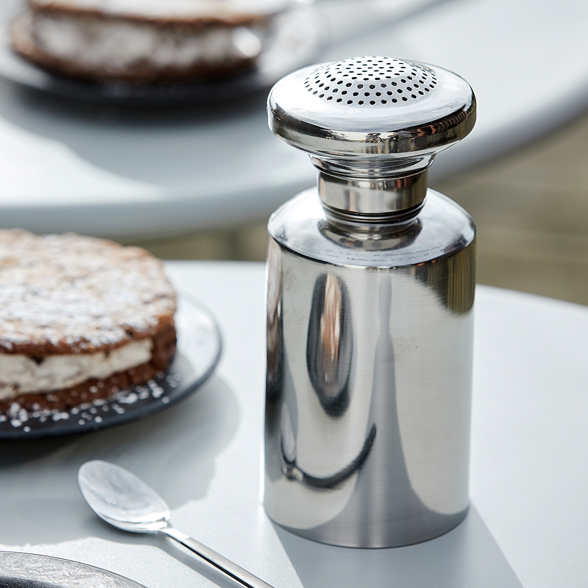 Strøboksen har et avtakbart hode, slik at du enkelt kan tilsette kakao, sukker, kanel eller melis i den. Avhengig av om du vil pynte cappuccinoen med kakao, kaken med melis eller havregrynene med sukker, vil strøboksen hjelpe deg med å få en jevn og god fordeling.