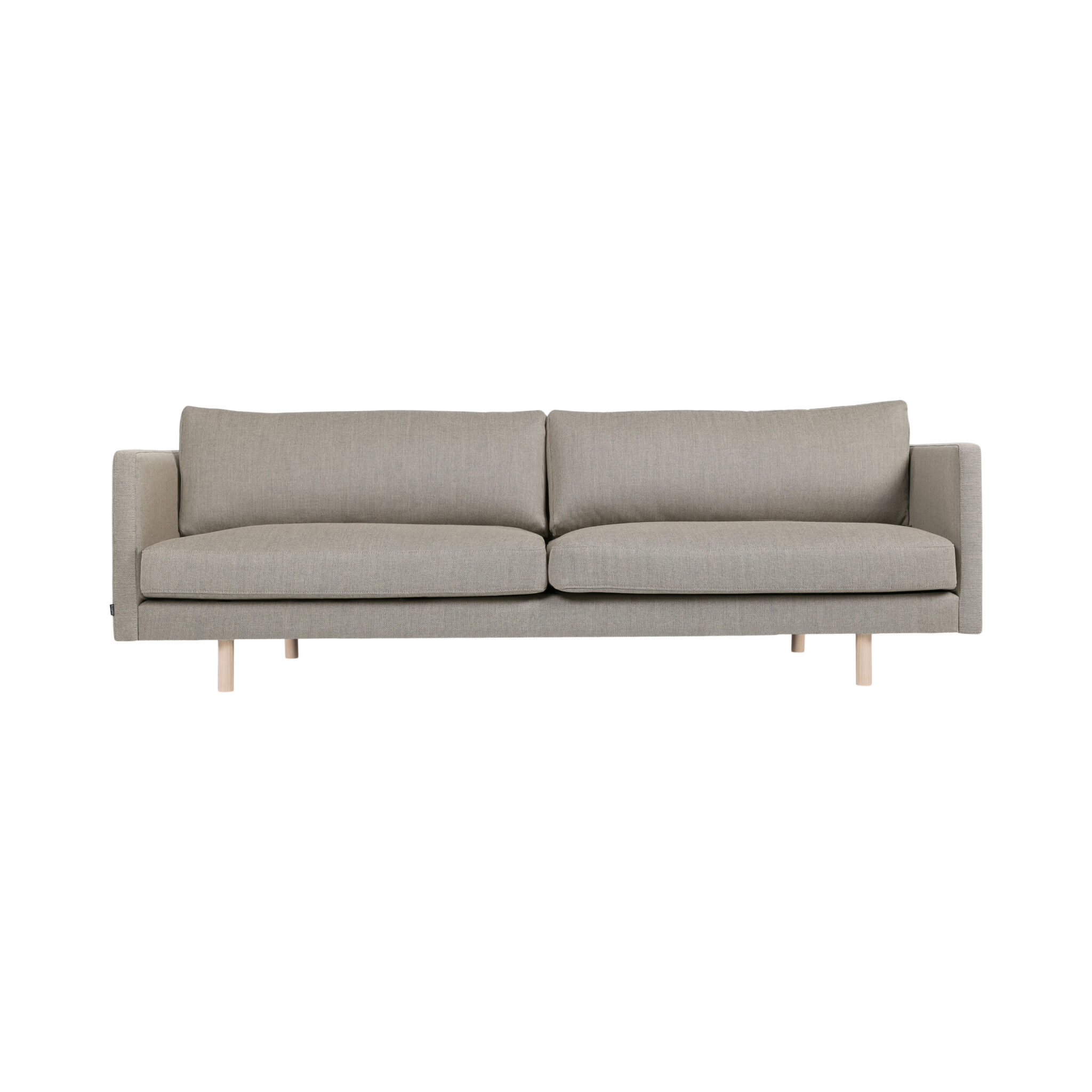 Sofaen Svev fra det norske designmerket Ygg & Lyng. Sofaen er laget av heltre og finér med No-sag fjærer, sete- og ryggputer med dun og kaldskum med dacron svøp.