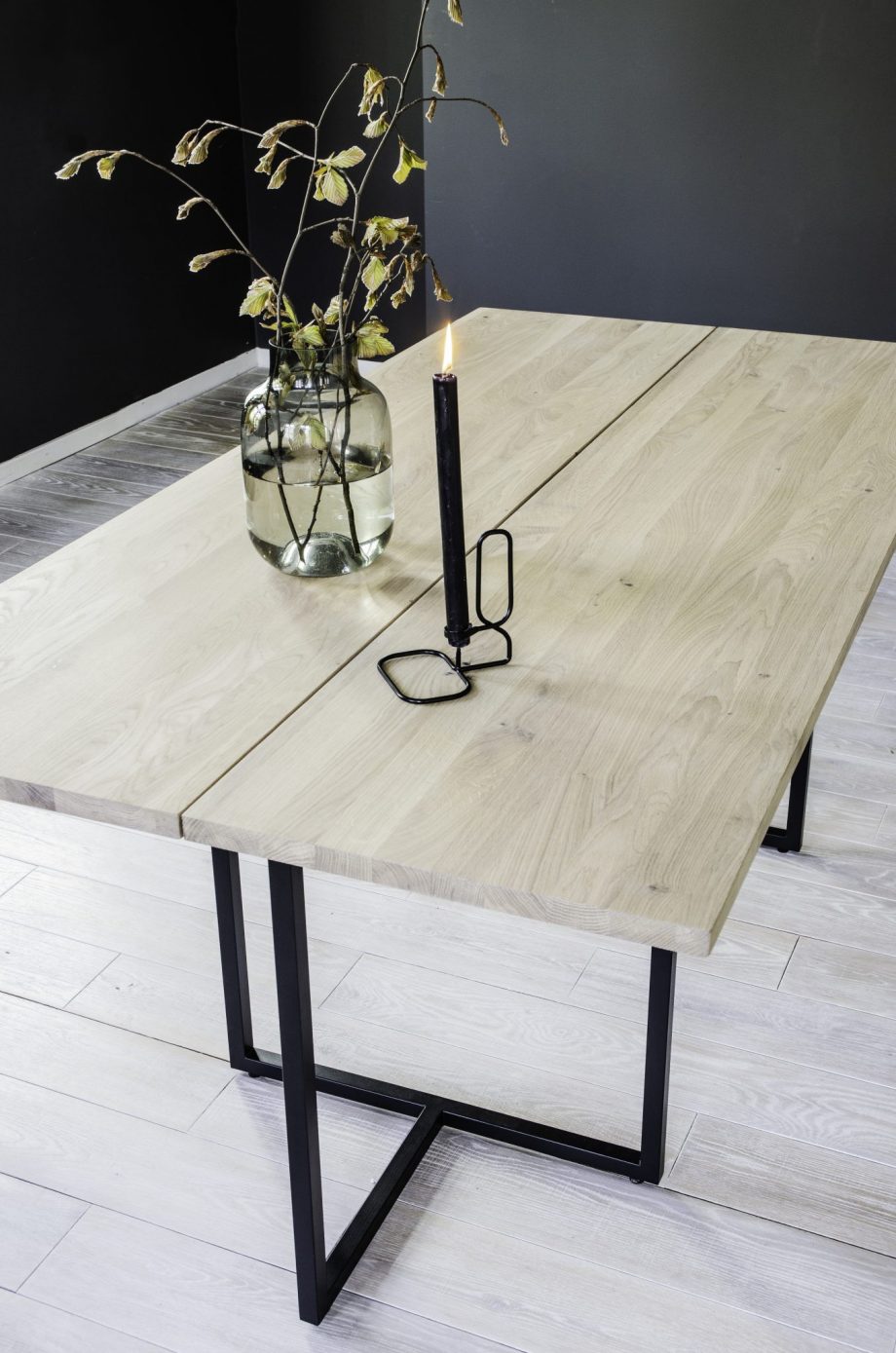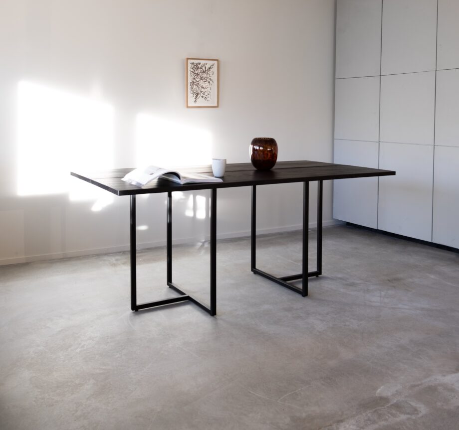 Bordtopp laget i premium eikefiner og sortlakkert understell. Velg mellom ulike behandlinger/farge på bordplaten (Naturoljet, hvitoljet, smoked eller sortbeiset.