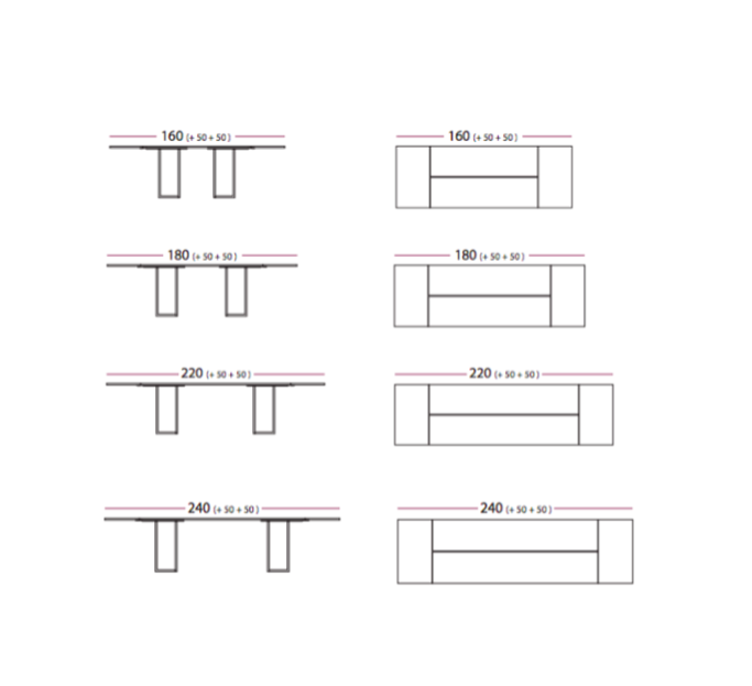 T-bordet spisebord har mulighet for utvidelser på hver side.