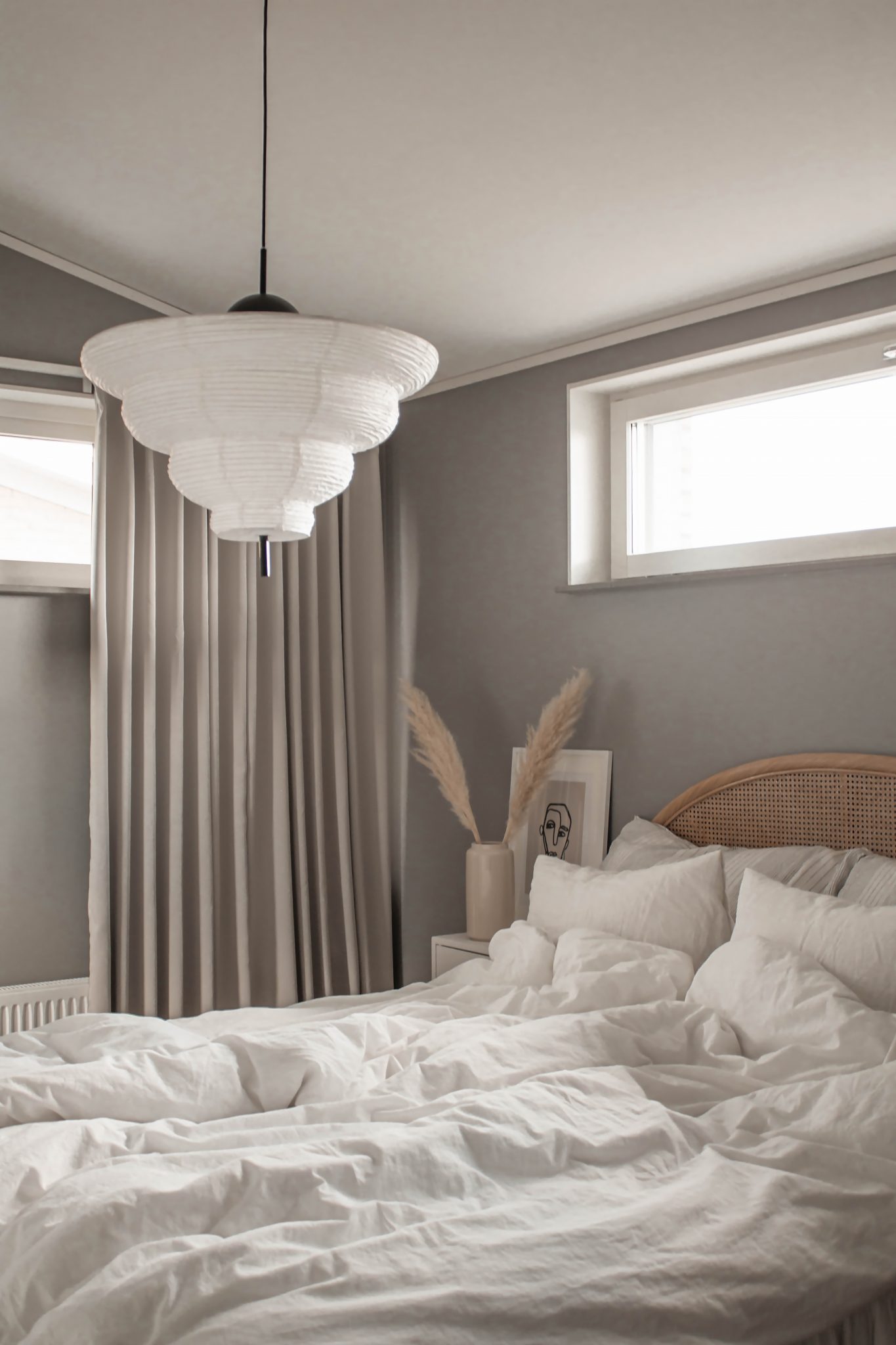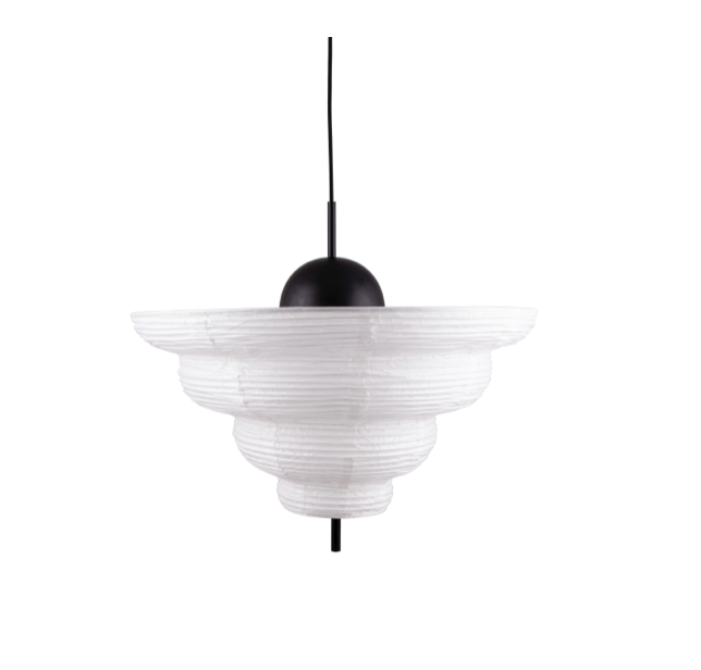 Taklampen «Kyoto», med inspirasjon fra Asia og den tradisjonelle rislampen. Designeren ønsket å skape en moderen vri på lampen med å lage den som en type spiral. Det tynne rispapiret skaper ett behagelig lys.