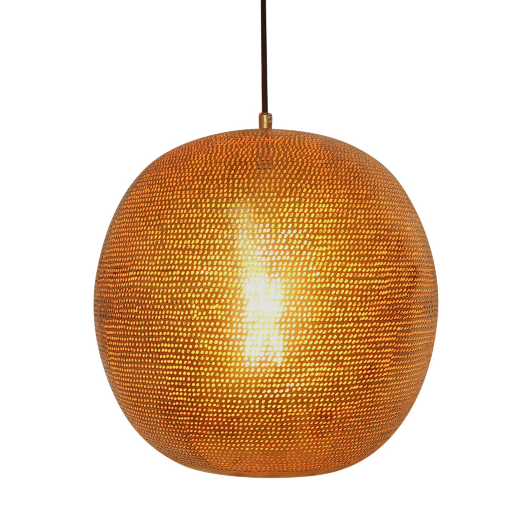 Taklampe i messing fra Sirocco Living. Håndlaget i et lite verksted i Kairo. Messingen bankes ut og små hull prikkes ut jevnt på overflaten. Hullene gir et flott mønster på veggen.