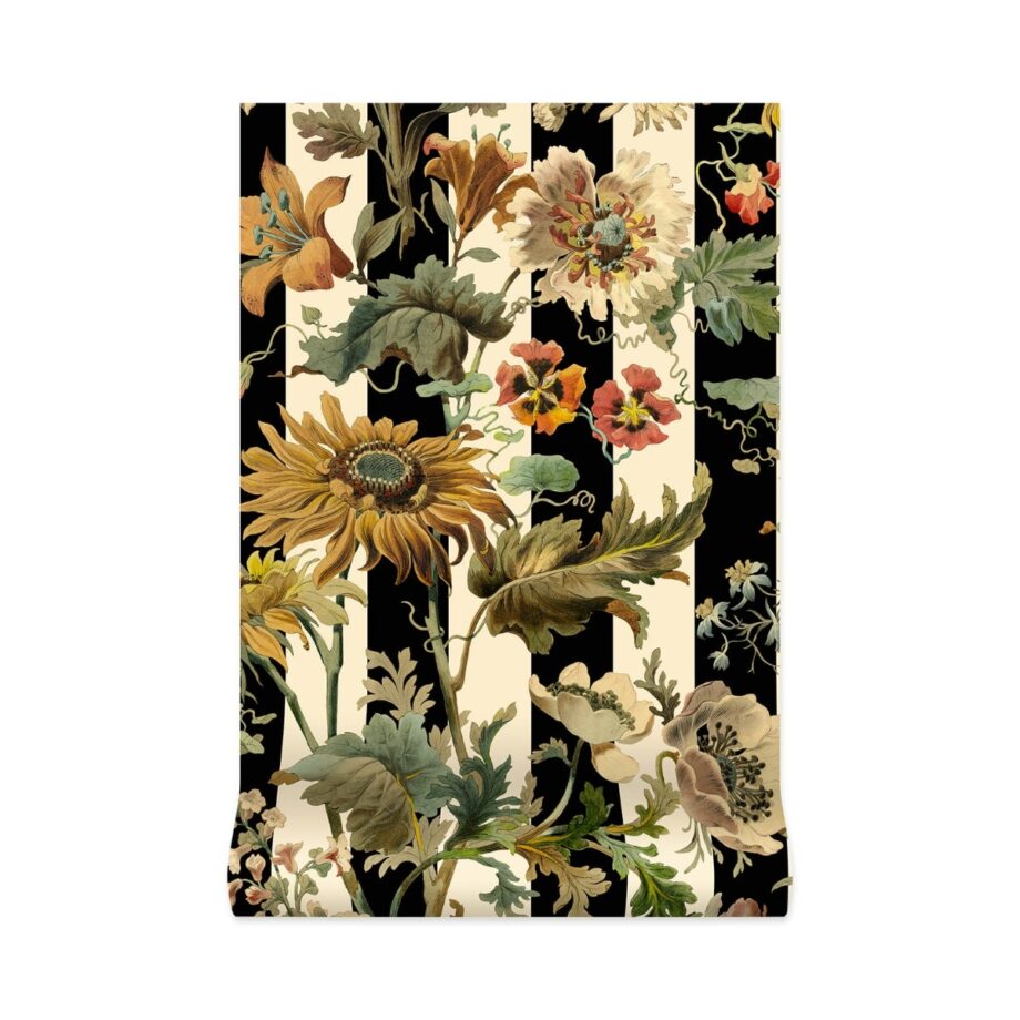 I den Arthurianske mytologien var øya Avalon et jordisk paradis, et sted der frukten ble snørt med magi og blomstene blomstret i overnaturlig skjønnhet. Så følger det at AVALON-tapetet blomstrer med utsøkte solsikker, valmuer, tusenfryd og liljer. Håndtegnet i blyant og akvarell på et ‘Noir’ bakteppe, og legemliggjør dette mystiske arkivet.