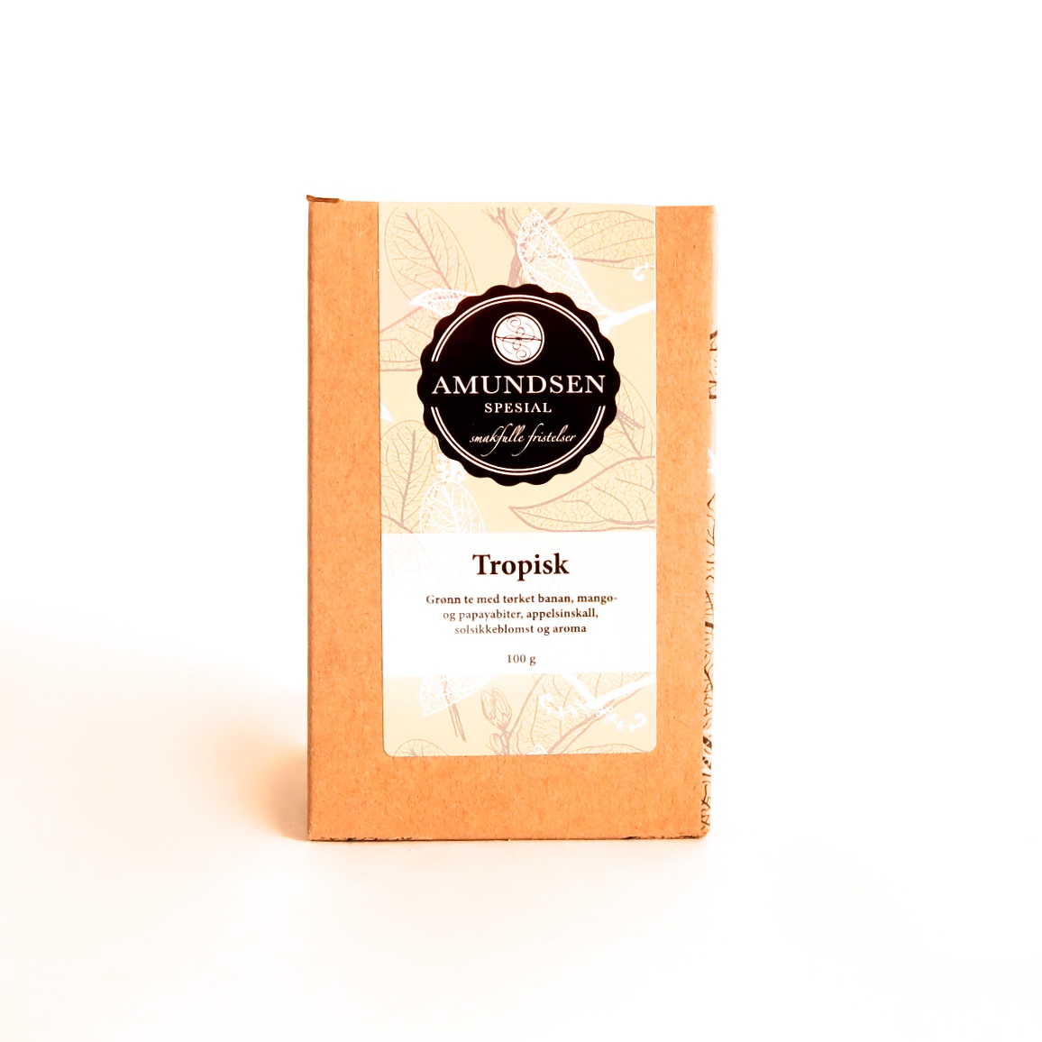 Grønn te med tørket banan, mango- og papayabiter, appelsinskall, solsikkeblomst og aroma