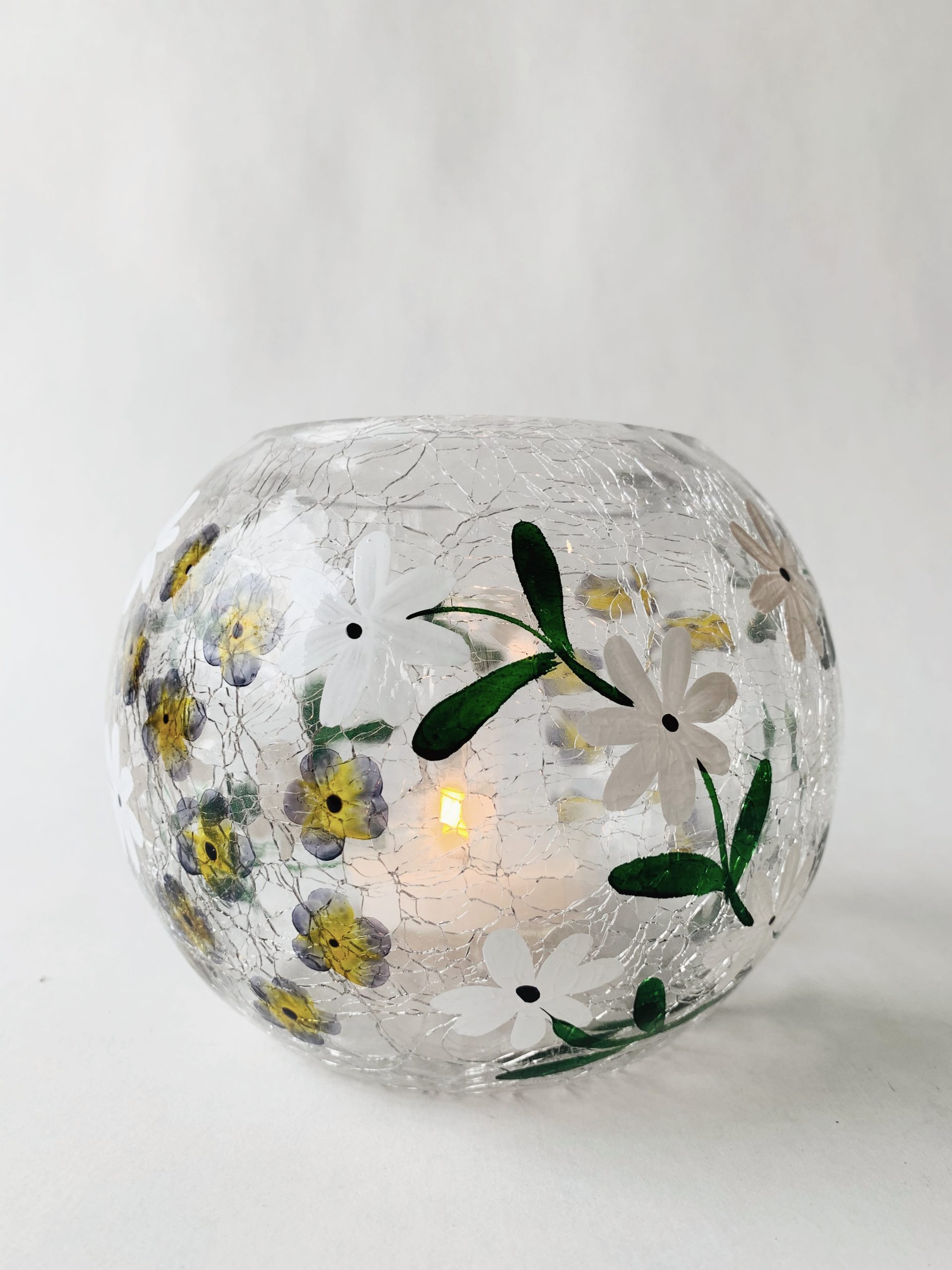 Lyslykt med botanisk motiv, håndlaget i glass og blir en fin detalj i hjemmet ditt. Spre lys og en koselig stemning med denne vakre lyslykten