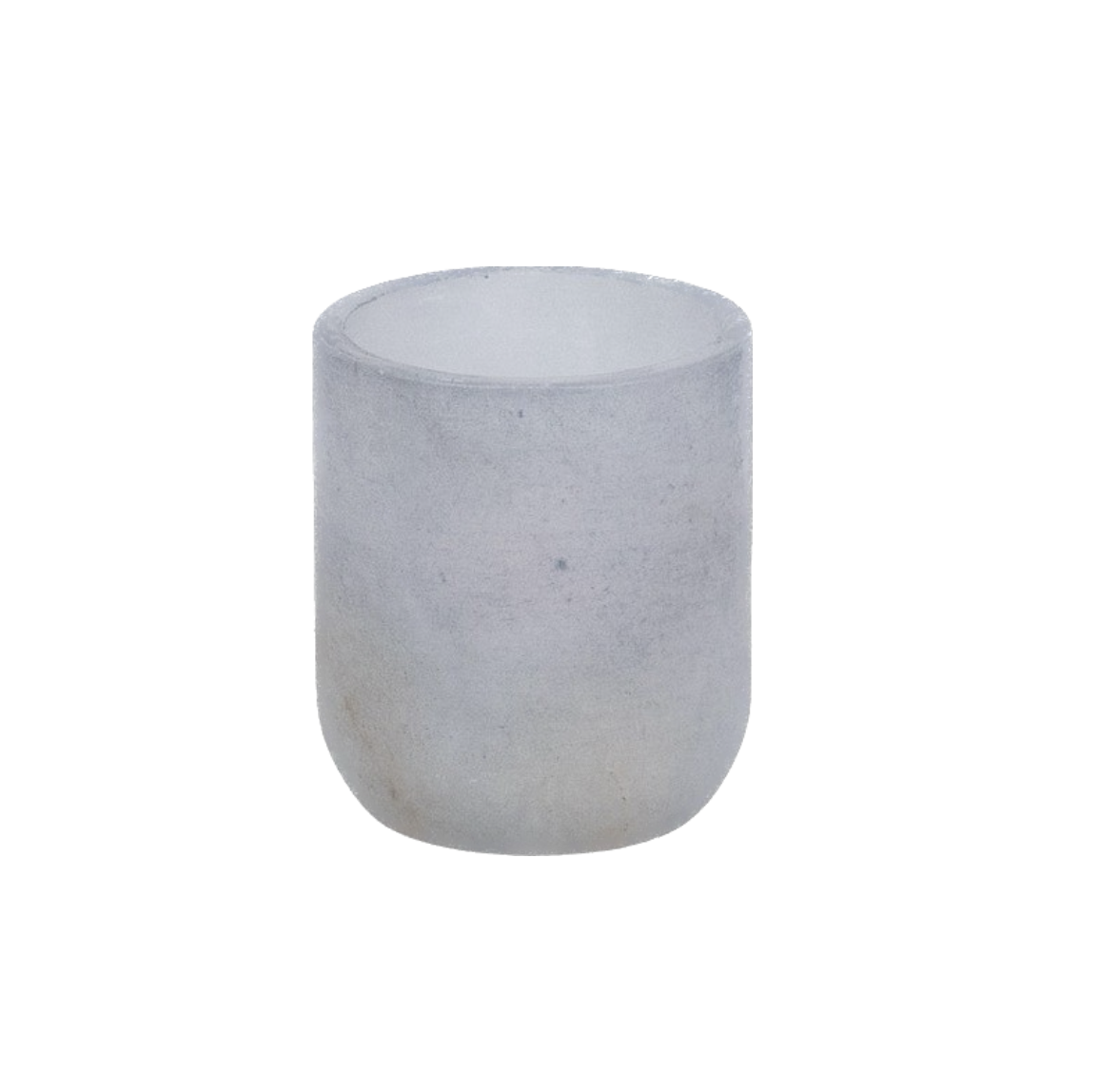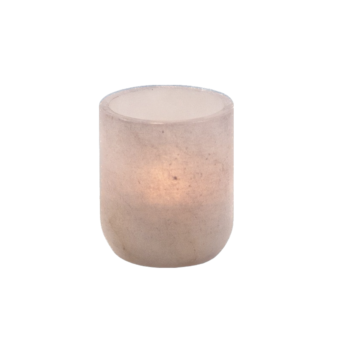 Telysholder i grå alabast. Marmoreringen fremstår vakkert i gløden fra det tente lyset.