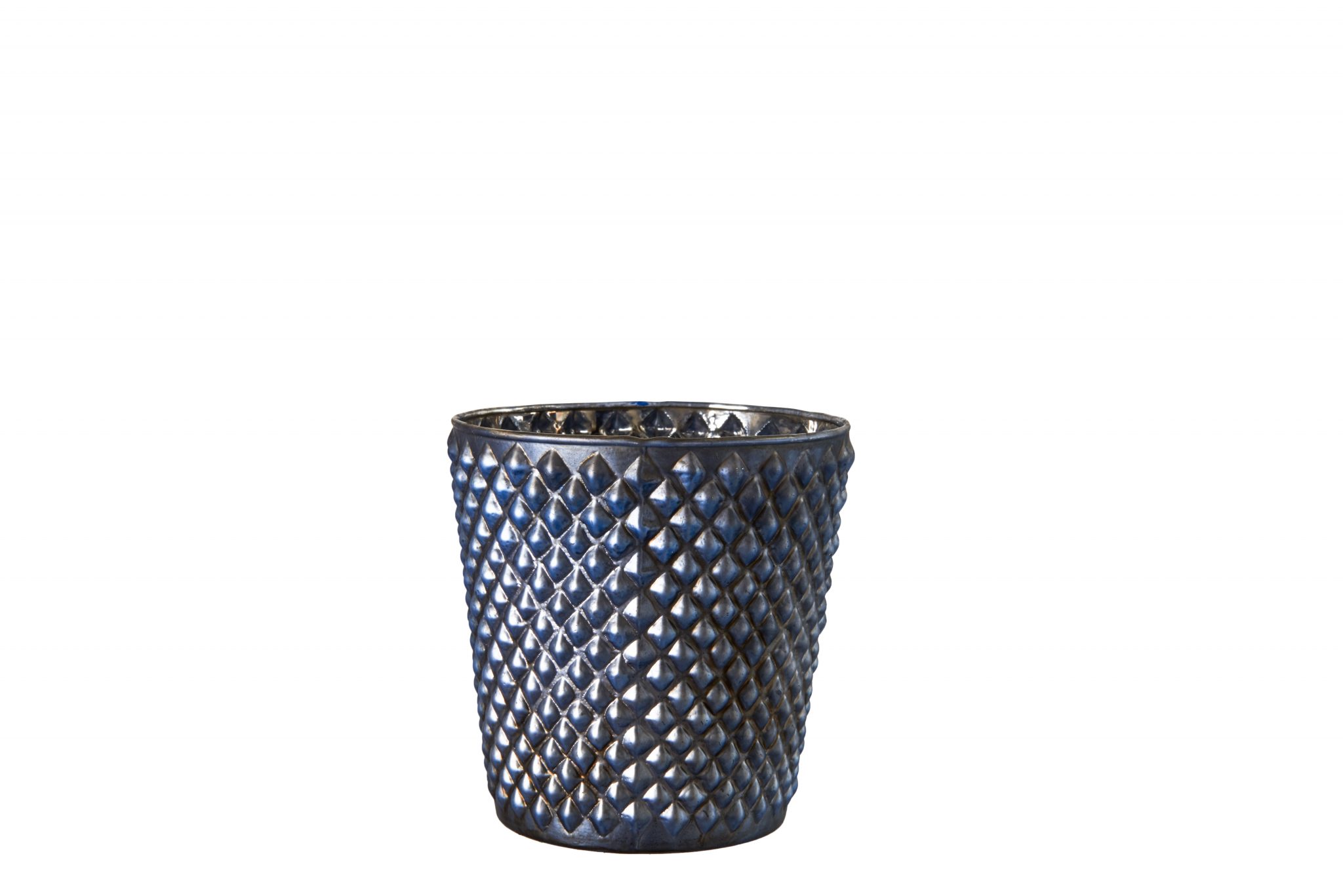 Telysholder, vintage blue. Dekorativ telysholder som gir en fint «mystisk» lys. Bruk gjerne et stort te-lys for å få litt kraftigere lys. Utsiden er lakkert, og kan miste farge ved kontakt med vann.