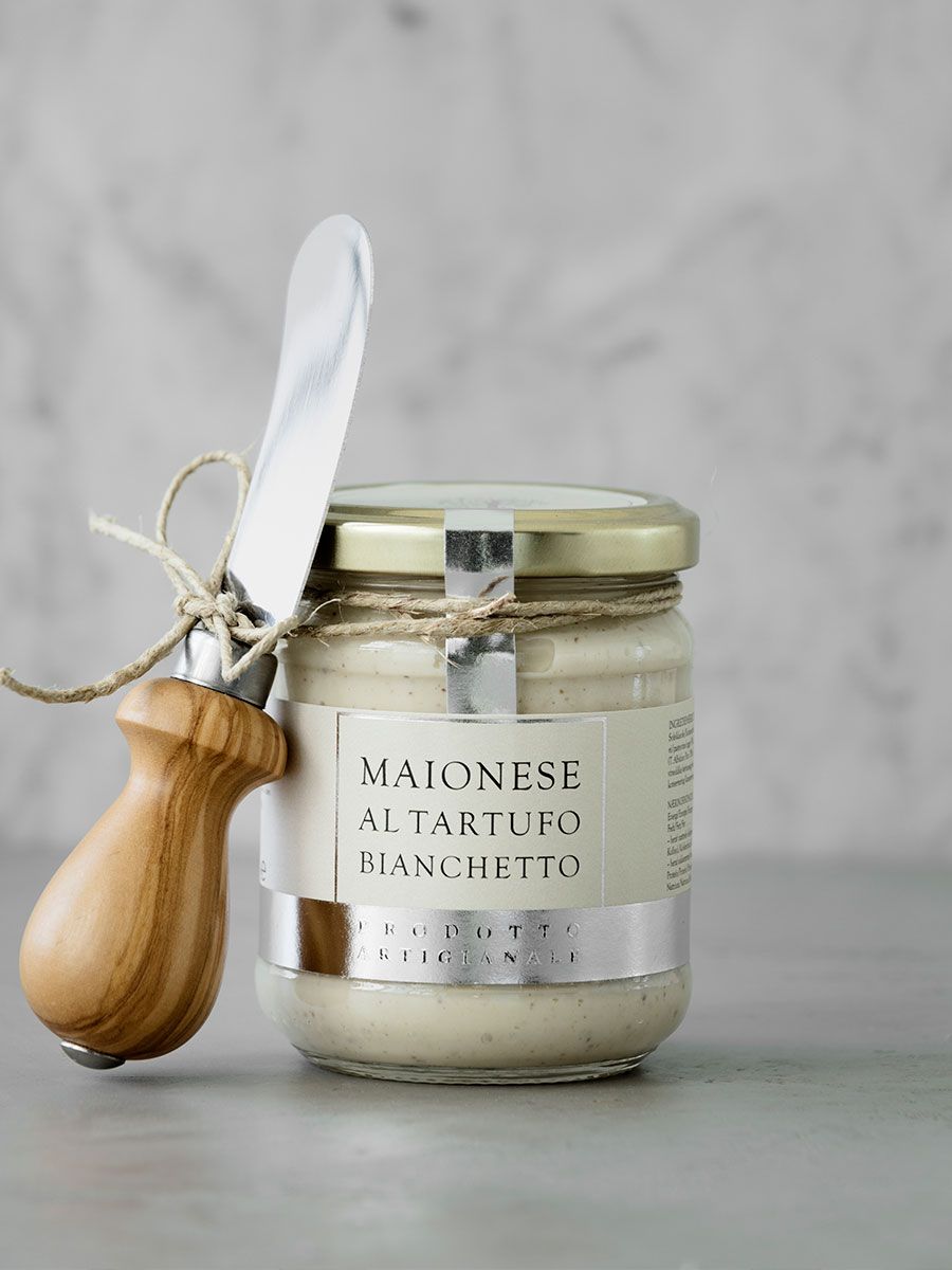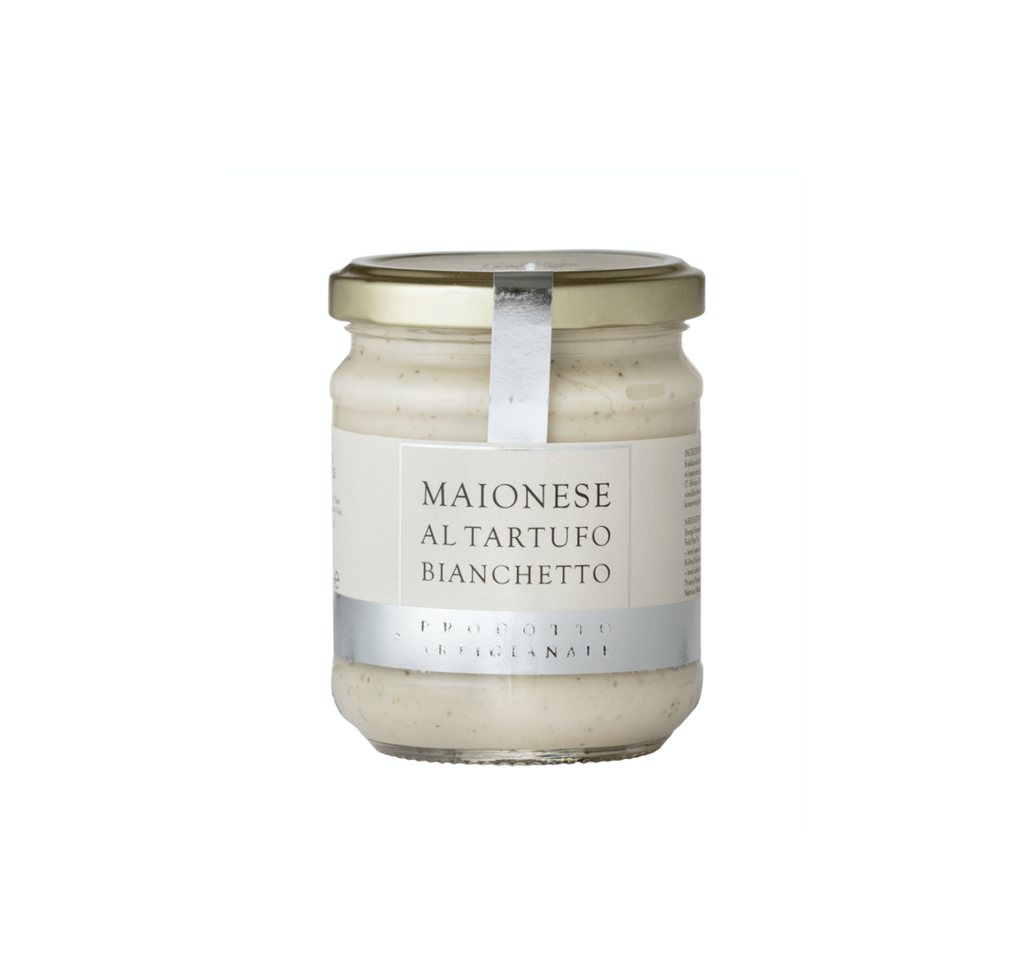 Trøffelmajonesen er en delikat, kremet naturlig majones med hvit trøffel. Den er perfekt for en hjemmelaget sandwich eller burger og som en dukkert for pommes frites.
