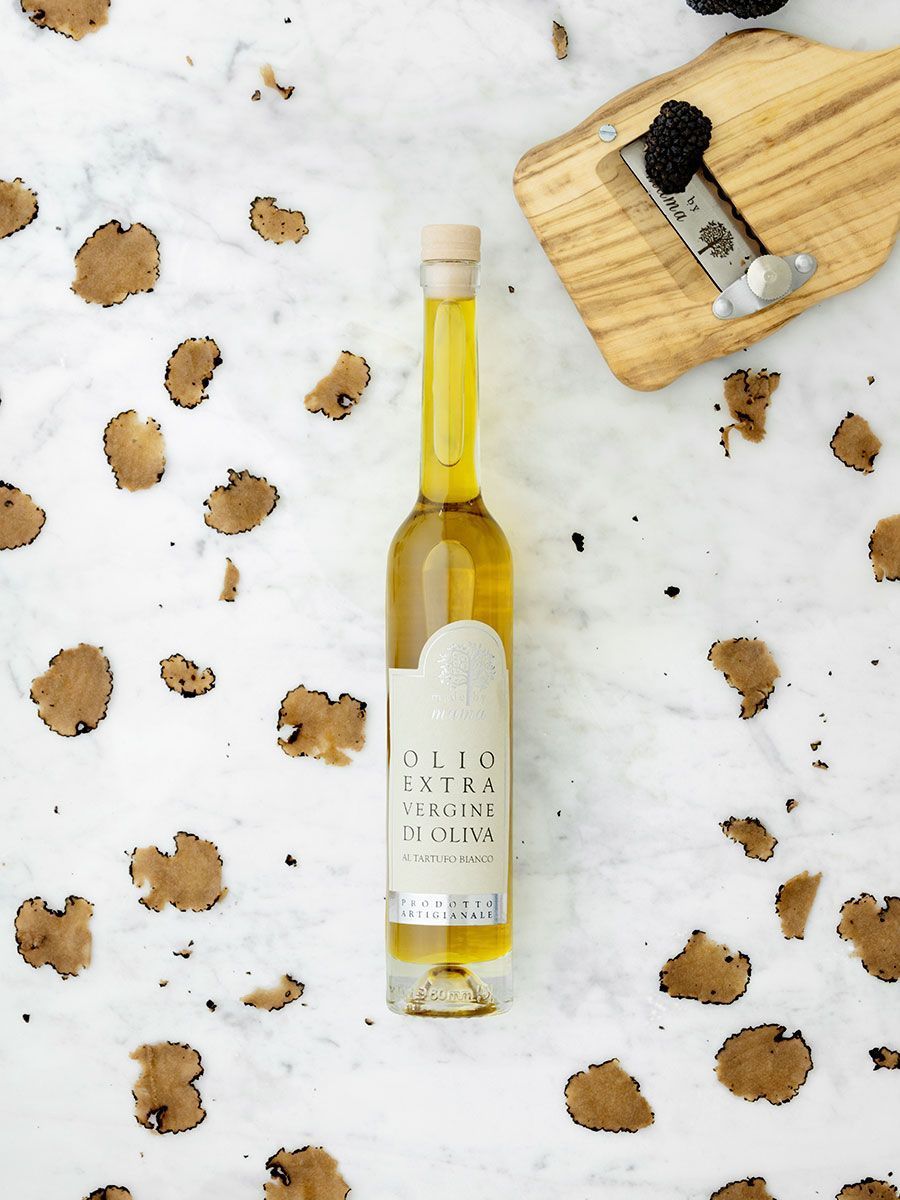 Hvit trøffelolje som passer perfekt i en pastarett, over en risotto, en omelett eller på en oksecarpaccio.