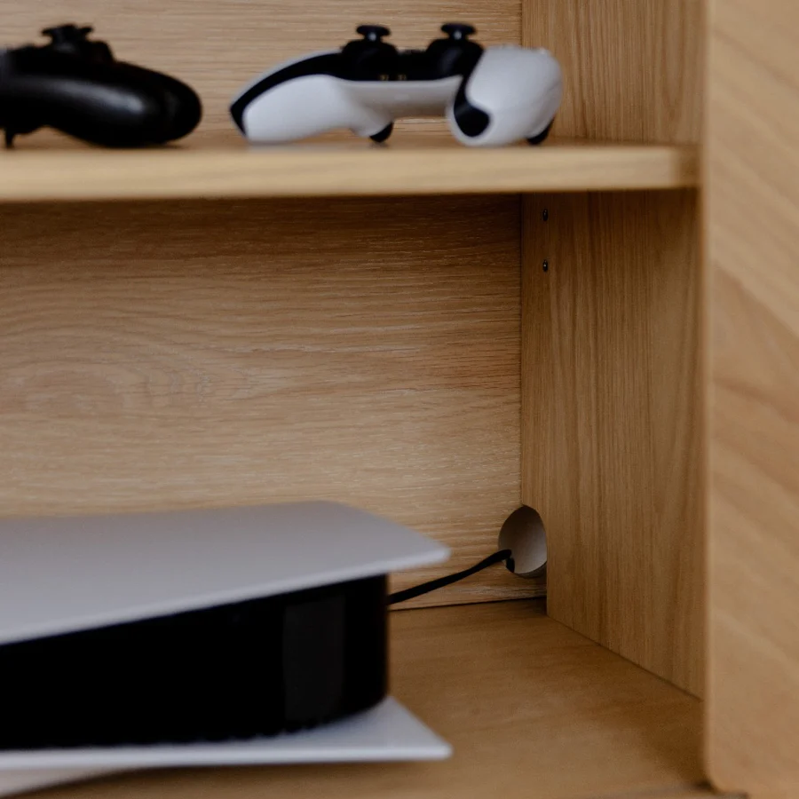 • Materiale: Solid eik, MDF, glass og metall