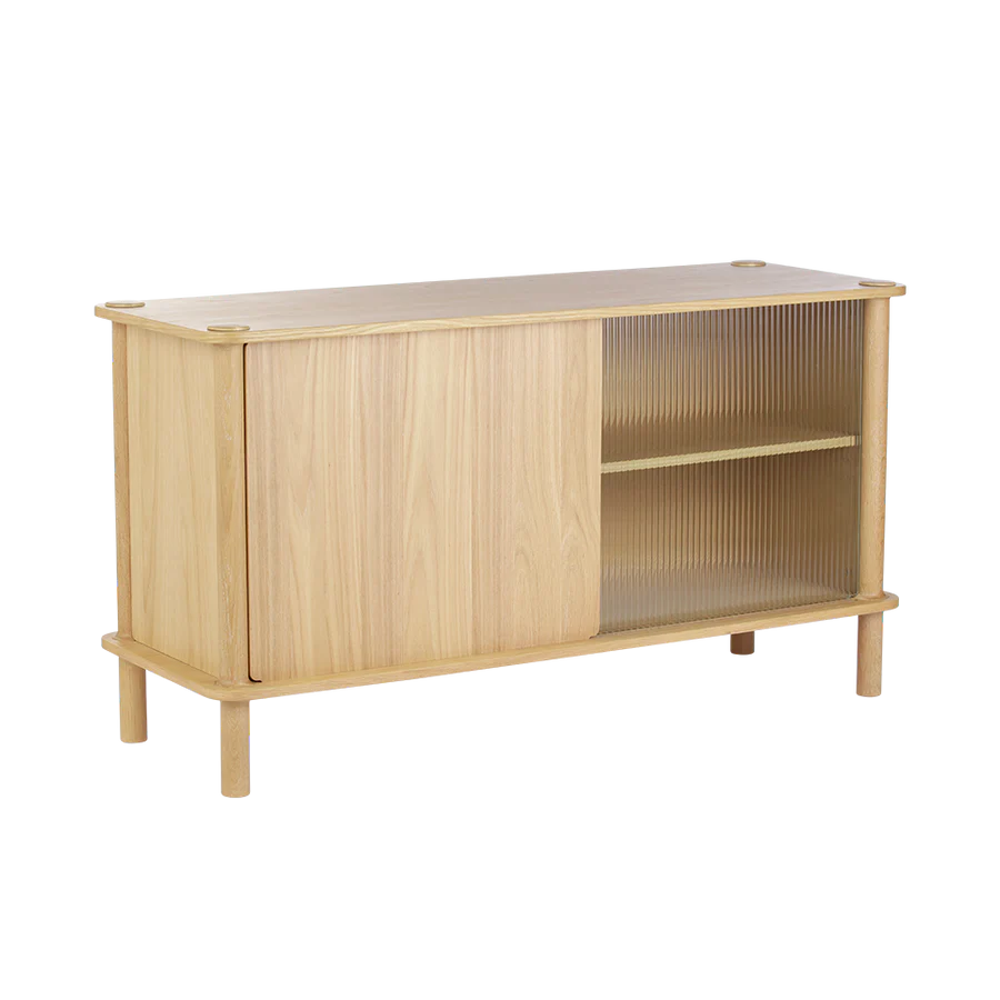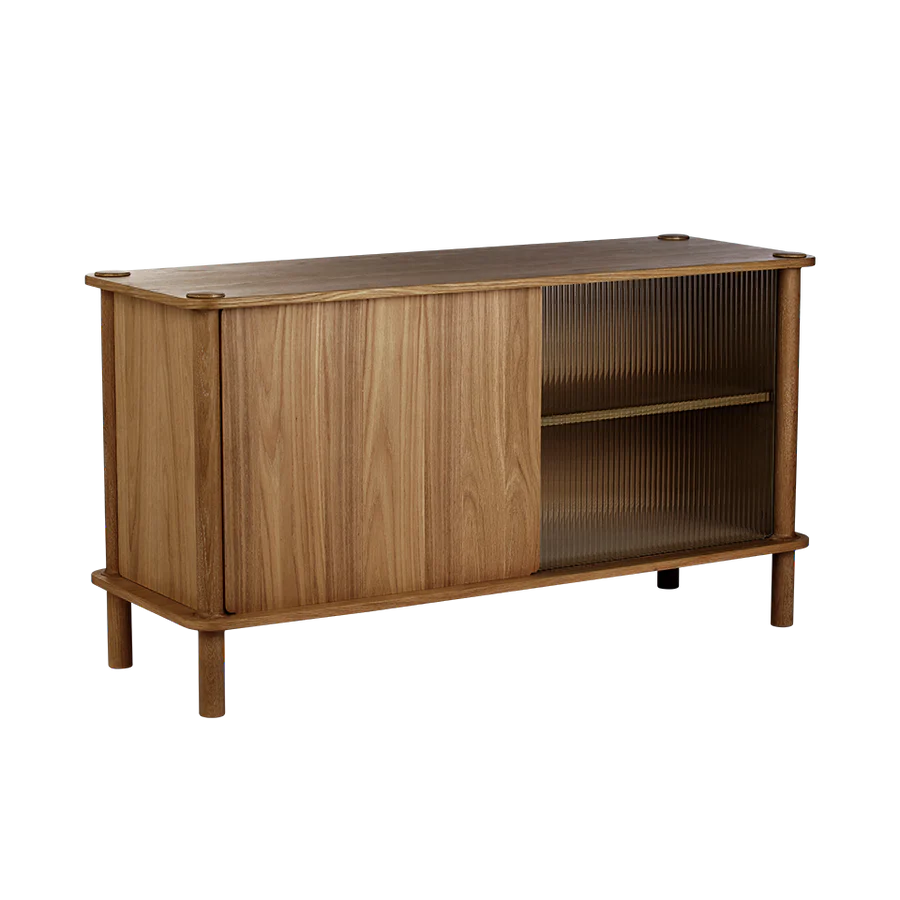 Skjenken tilbyr skjenkdører i riflet glass og eik, og gir deg mulighet til å personliggjøre og heve interiøret ditt. Dørene kan mikses og matches for å sikre et uttrykk som passer til alle innstillinger.