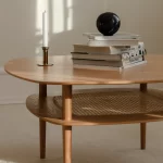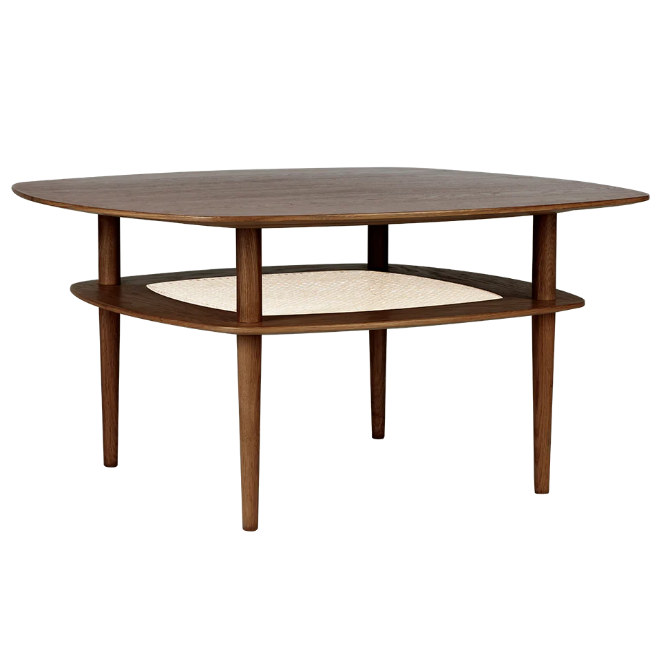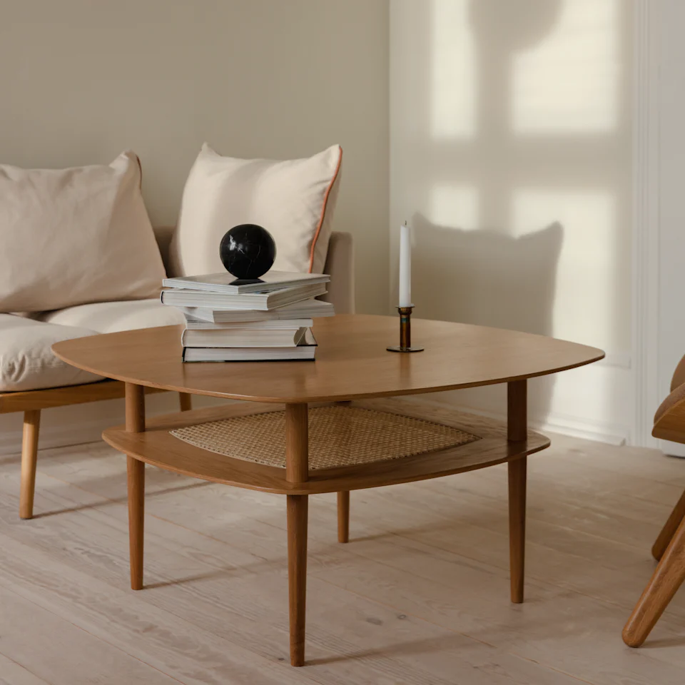 Together sofabordene er laget av eik, med en hylle under. Bordets avrundede hjørner tilfører designet en myk eksklusivitet og et luftig uttrykk. Bena på bordet er trukket inn under bordplaten – av hensyn til sikkerheten til barna og tærne dine.
