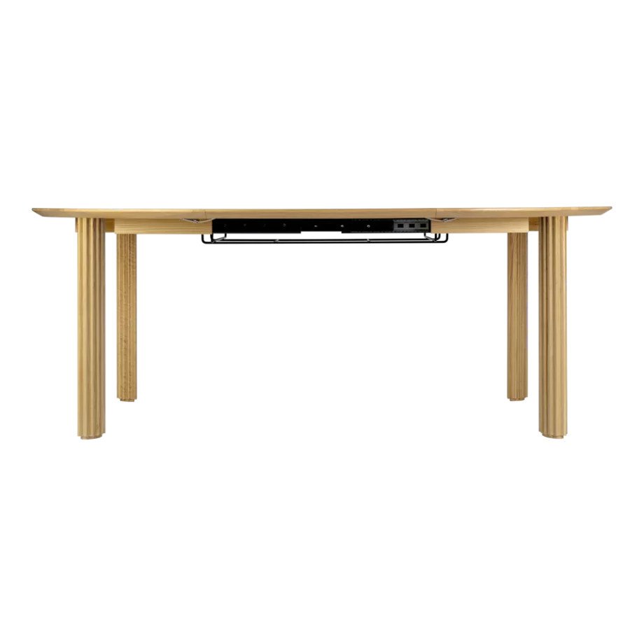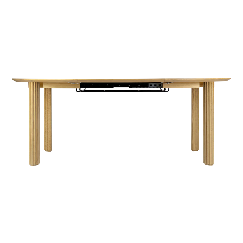 Midtdelen av bordet kan heves – både når det er forlenget og når det ikke er forlenget – noe som fremhever bordets allsidighet. Løft midten for å fremheve dekorasjonene og blomstene på bordet eller som et sted for å sette maten. Og hvis du ønsker å legge til en duk, kan du enkelt justere midtdelen med resten av bordet.