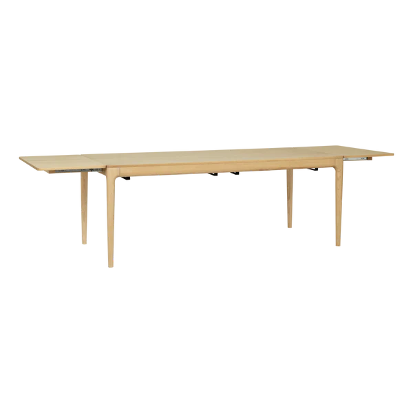Spisebordet har plass til opptil 12 personer og finnes i Hvitoljet eik, mørk eik og sort eik.
