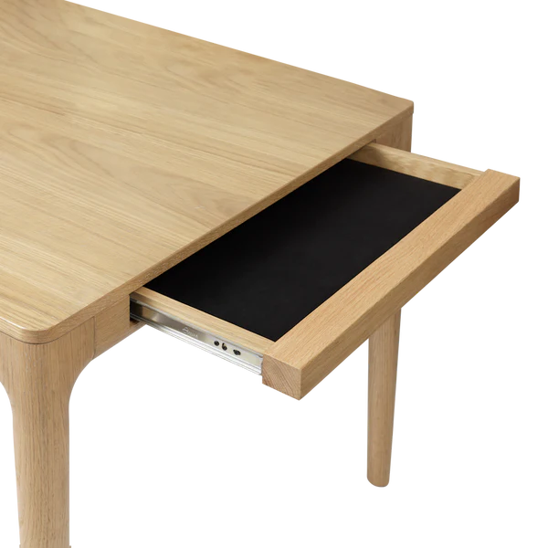De to skuffene fungerer også som holdere for de to tilleggsplatene, noe som gjør bordet stabilt selv når det er forlenget. Tilleggsplatene er skjult under bordet – enkle å legge til eller ta av.