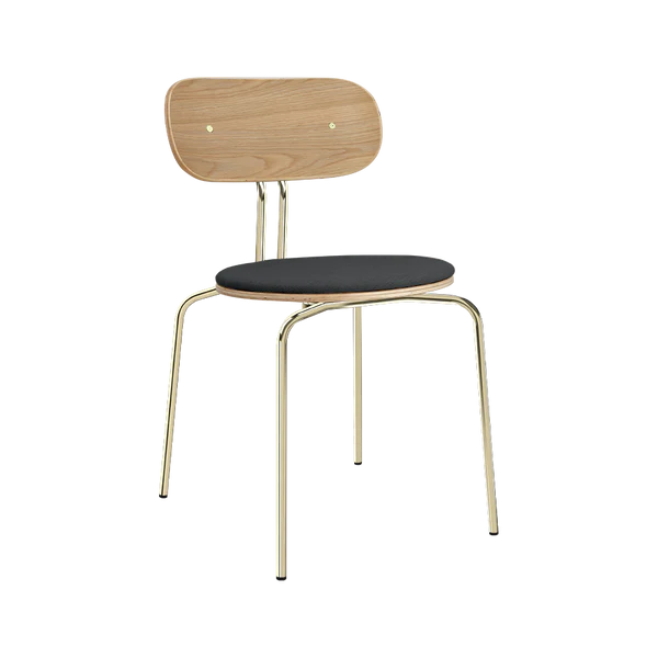 Curious er en stabelbar stol med et lett, minimalistisk og elegant uttrykk. Laget av eikefiner, er Curious tilgjengelig med ben i messing eller sorte. Mulighet for en sittepute for å øke komforten, seteputen er tilgjengelig i 17 skreddersydde farger av det nye 100 % resirkulerte Horizons-stoffet.