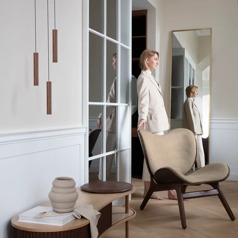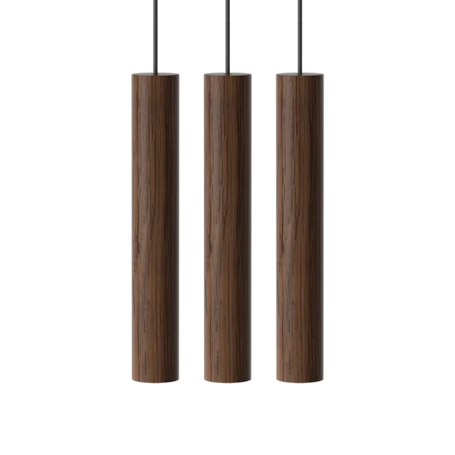 En klynge med 3 pendler i tre i sin enkleste og reneste form, Chimes bringer de nordiske toner inn i interiøret. Et stykke massiv eik, kombinert med en varm LED-lyskilde, er Chimes basert på de grasiøse linjene som oppstår fra treet i skogen.