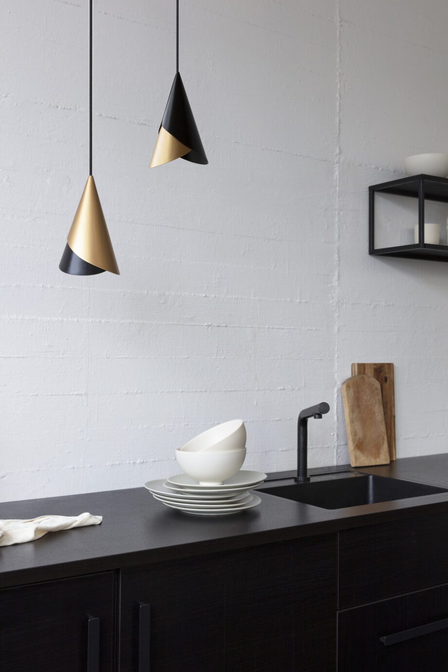 Cornet er en fleksibel lampeskjerm som består av to metallkjegler som kan roteres og byttes rundt for å gi lyset og utseendet du søker. Det nedadgående lyset på Cornet kan kontrolleres og justeres sidelengs ved å rotere de to skjermene, for å belyse spesifikke punkter i interiøret, noe som gjør det perfekt over kjøkkenbenken eller ved siden av din favorittlesestol.