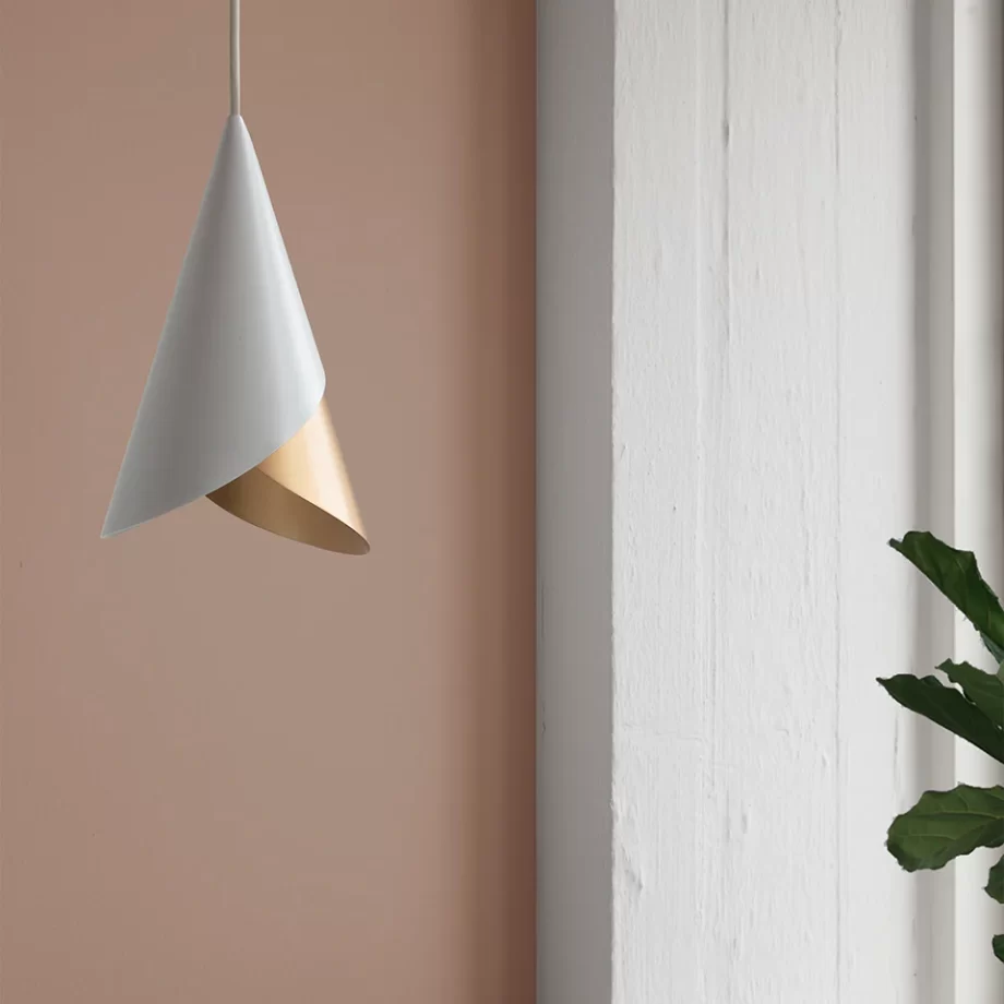 Cornet er en fleksibel lampeskjerm som består av to metallkjegler som kan roteres og byttes rundt for å gi lyset og utseendet du søker. Det nedadgående lyset på Cornet kan kontrolleres og justeres sidelengs ved å rotere de to skjermene, for å belyse spesifikke punkter i interiøret, noe som gjør det perfekt over kjøkkenbenken eller ved siden av din favorittlesestol.
