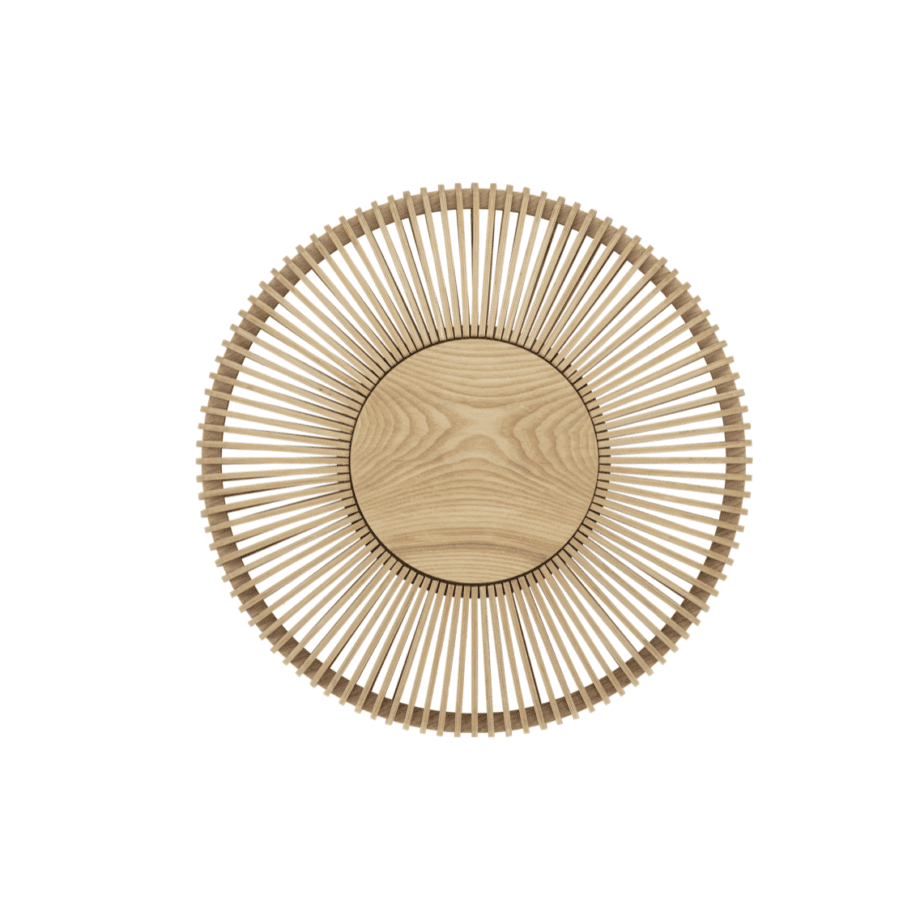 Clava Up wood er en vegglampe laget av laserkuttede trelameller, designet for å lyse opp hjemmet med lekne lysstråler på veggene.