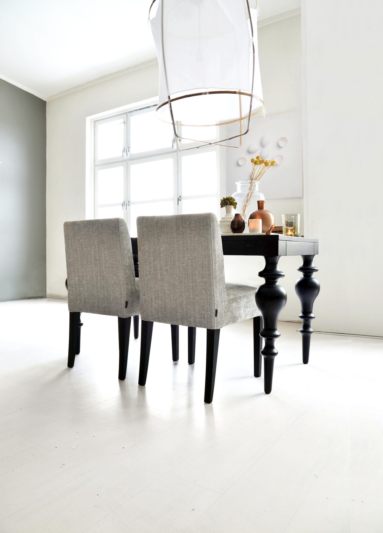 Velg mellom Ygg & Lyng sine førsteklasses tekstiler. Velg også mellom 3 forskjellige behandlinger på stolbeinene i eik, naturoljet, hvitoljet eller sortbeiset.