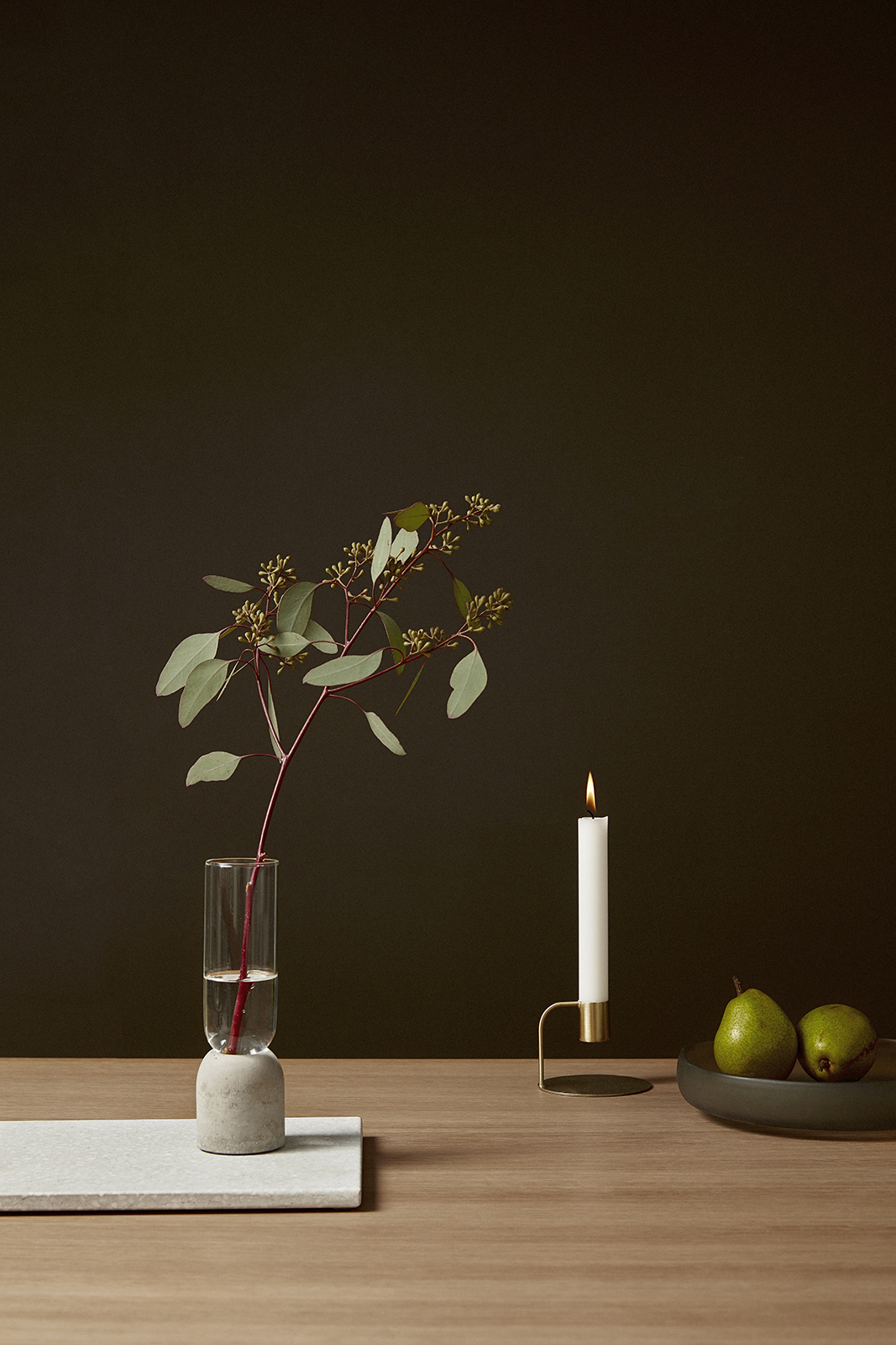 Dekorativ vase med betong og klart glass. Passer perfekt til en enkel stilk av din favorittblomst, kommer i to forskjellige størrelser.