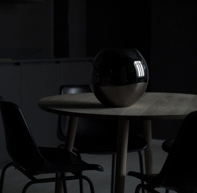 Glassvase med en blank svart farge. Anbefaler kun håndvask.
