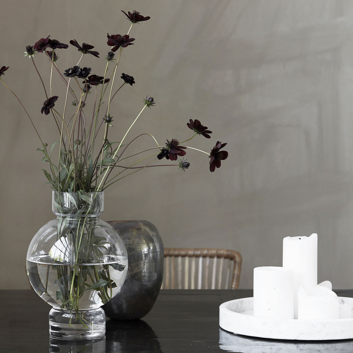 Dekorativ og stilren vase i klart glass. Bruk vasen til friske blomster eller et par fine grener fra hagen for hyggelig kos.