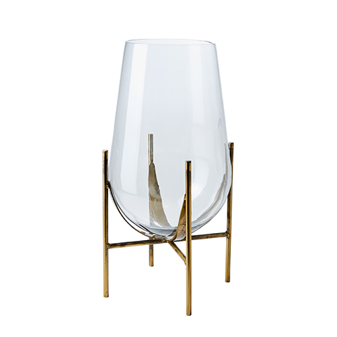 Dekorativ vase i glass på stativ i metal.. Dekorer med dine favoritt blomster, enkelt å fornye etter sesongene.
