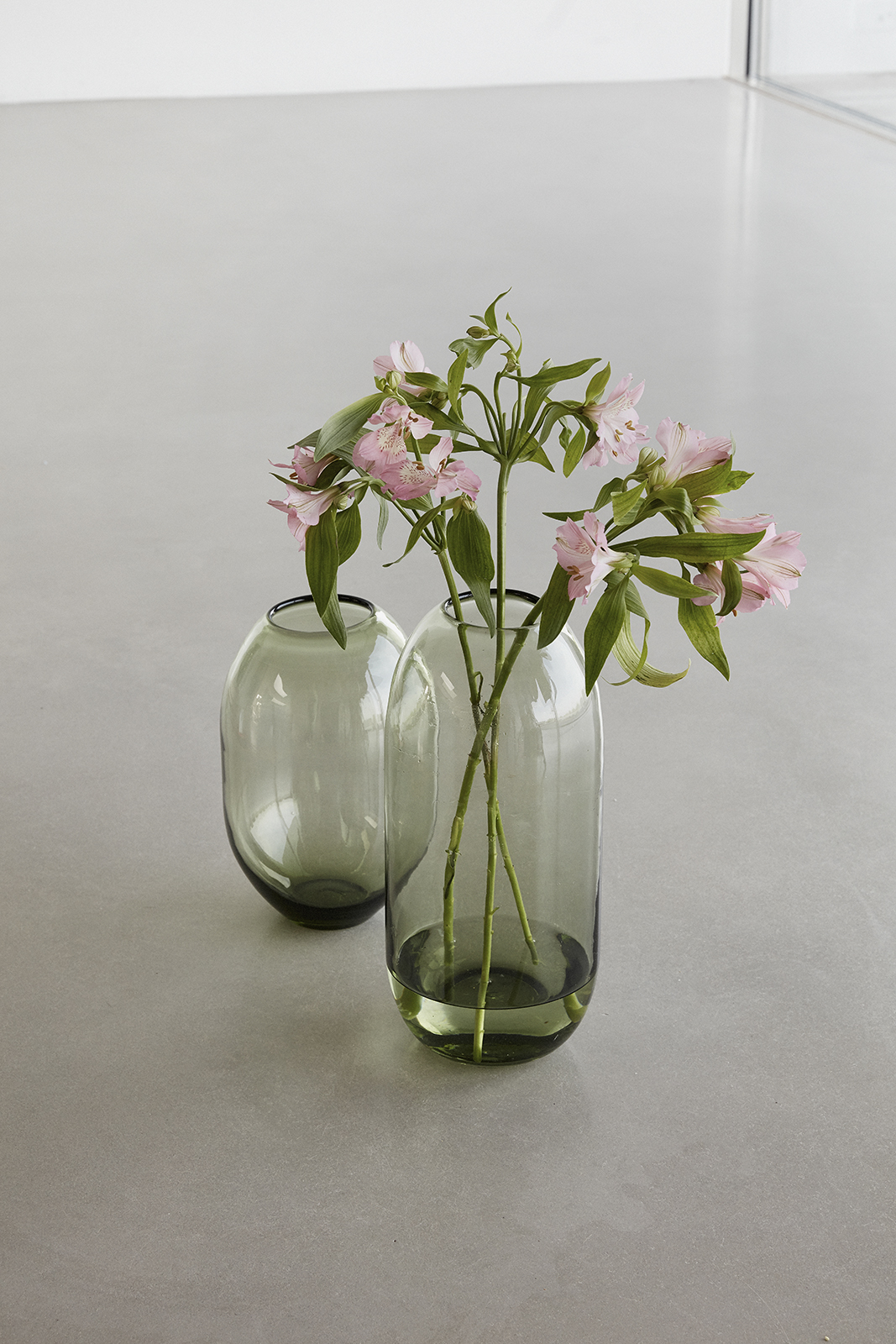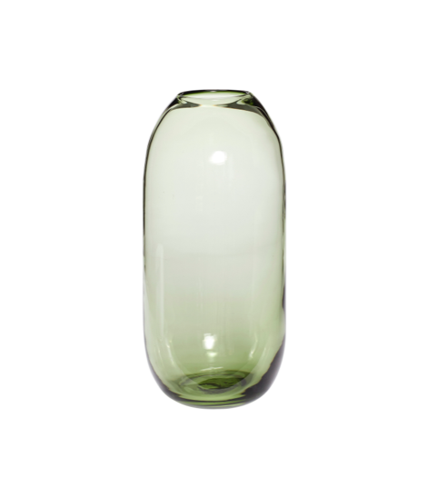 Dekorativ håndlaget vase i grønt glass. Fyll den med sesongens blomster eller la den være et vakkert smykke for seg selv.