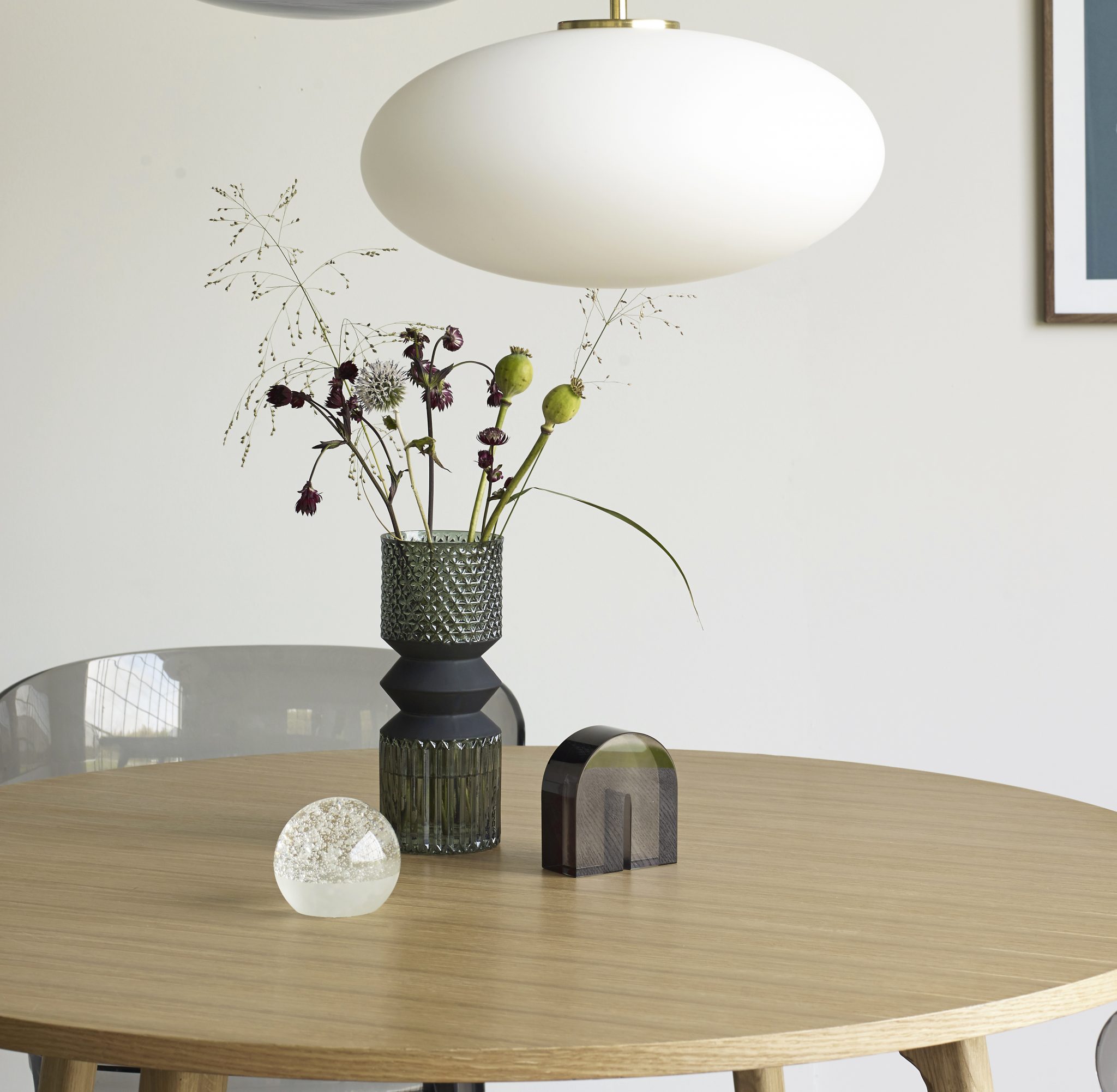 Dekorativ og stilren vase i grønt glass. Bruk vasen til friske blomster eller et par fine grener fra hagen for hyggelig kos.