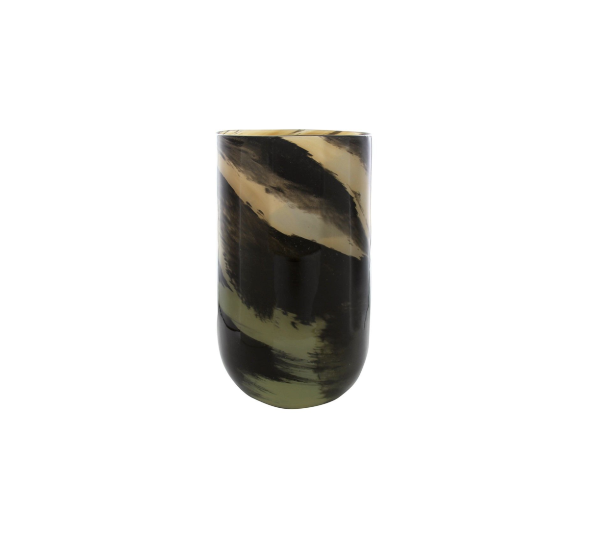 Kaja er en dekorativ og håndlaget vase i vakre sjatteringer av sort og brun/ beige. Den er et kunstverk i seg selv og vil ta seg godt ut i gangen på et konsollbord, et sidebord i stuen eller på spisebordet. Glasset tåler både vann og varme så den kan både brukes som vase til friske blomster og som lyslykt.