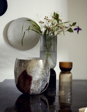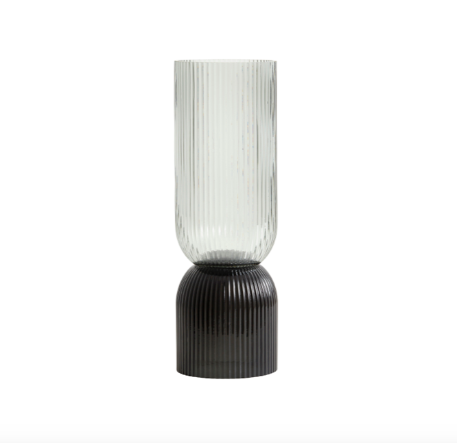 Vase «Riva i farget glass, munnblåst. Denne vasen er like fin begge veier og kan også brukes som en lykt, med et stort telys i.